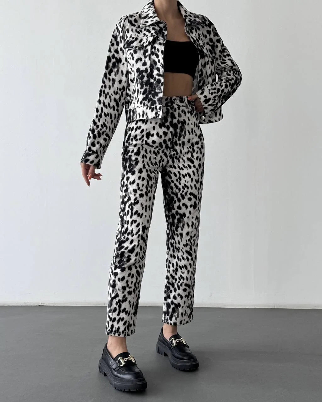 MYRA Leopar Desenli Gömlek Yaka Kısa Ceket Siyah, şıklığı ve feminenliği bir arada sunar.