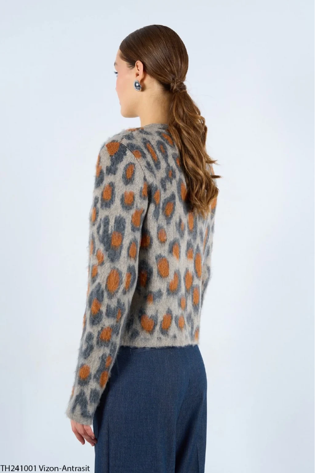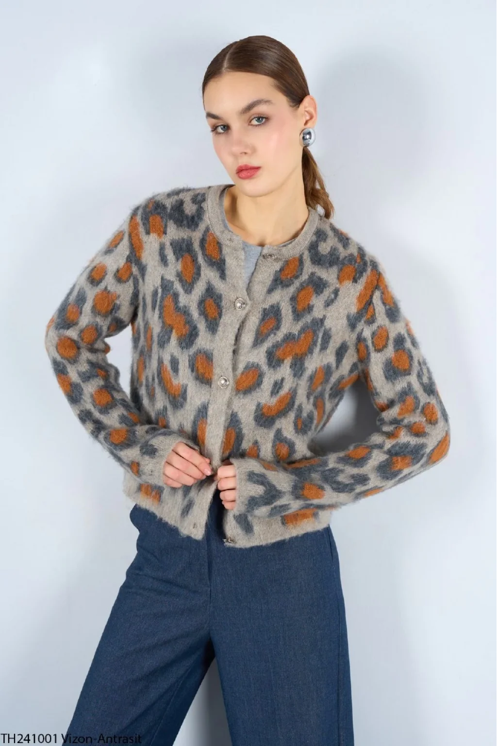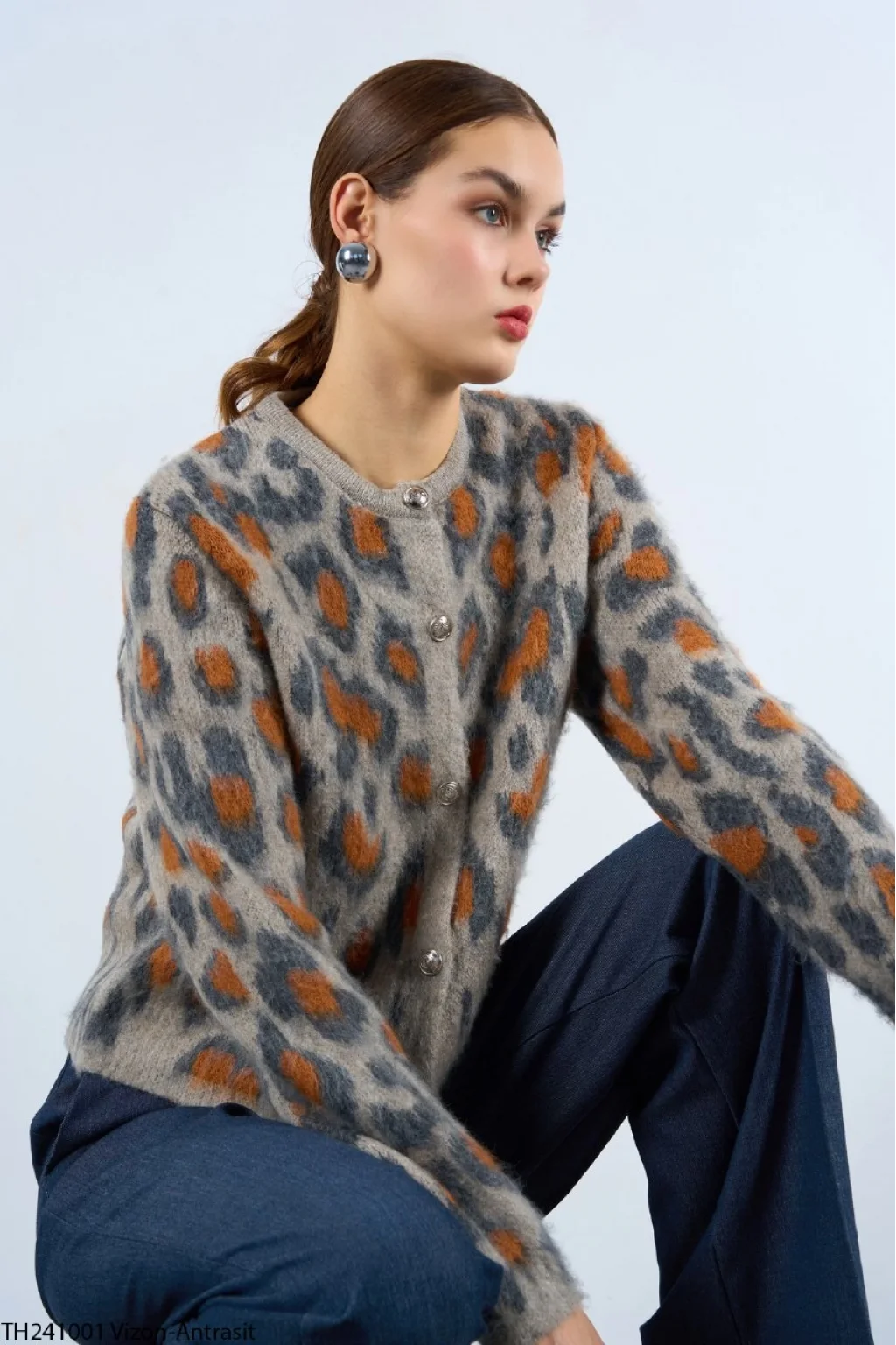 LEOPAR DESENLİ ŞARDONLU HIRKA ANTRASİT