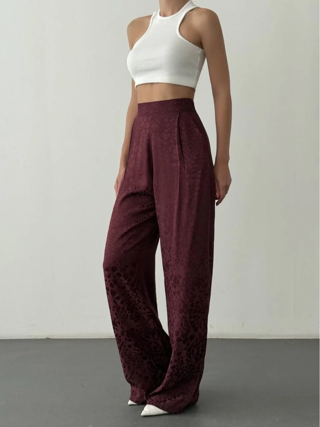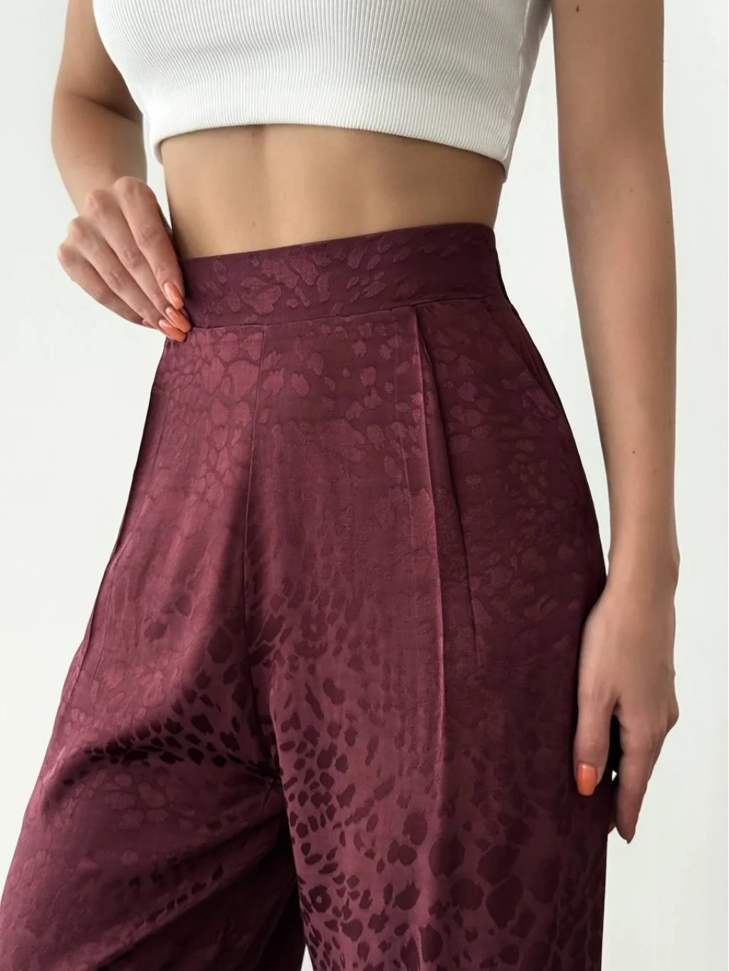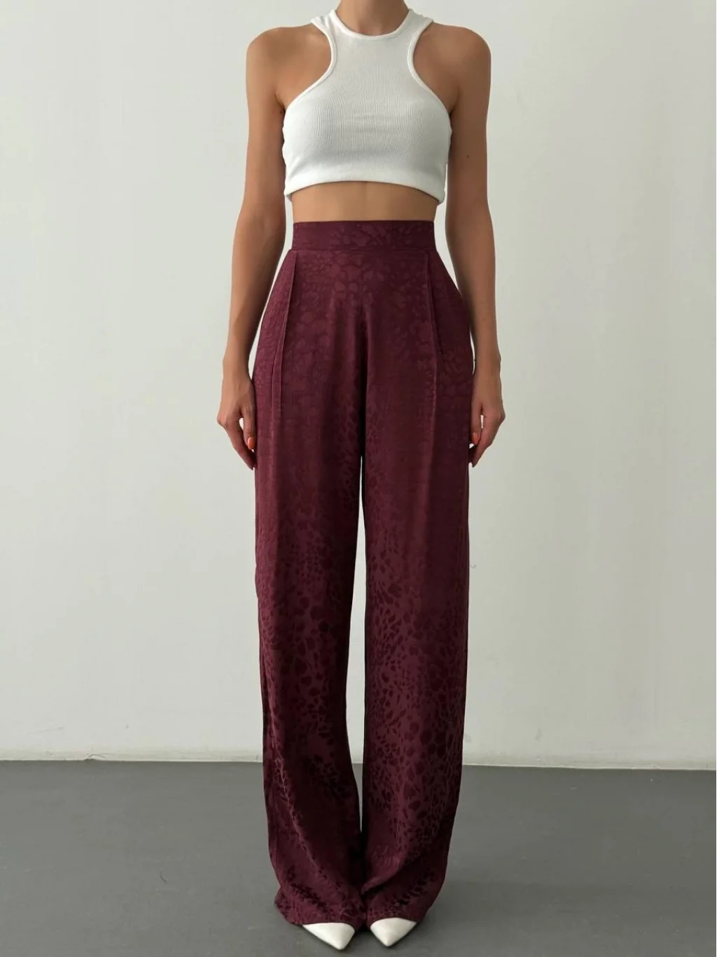 MYRA'nın şık ve şık leopar desenli saten pantolonu ile tarzınızı tamamlayın.