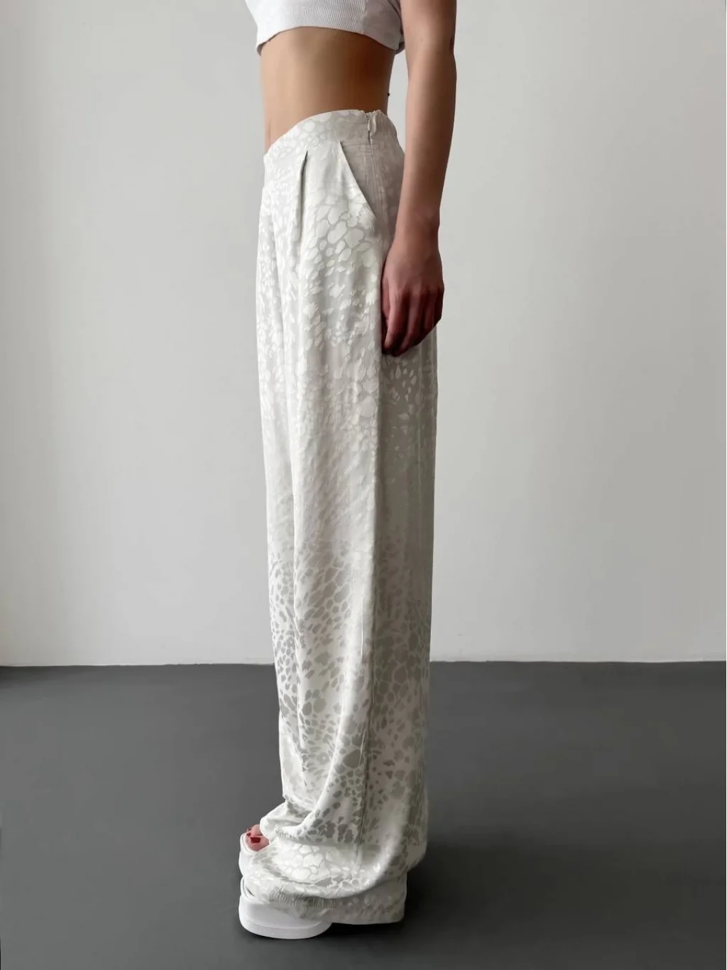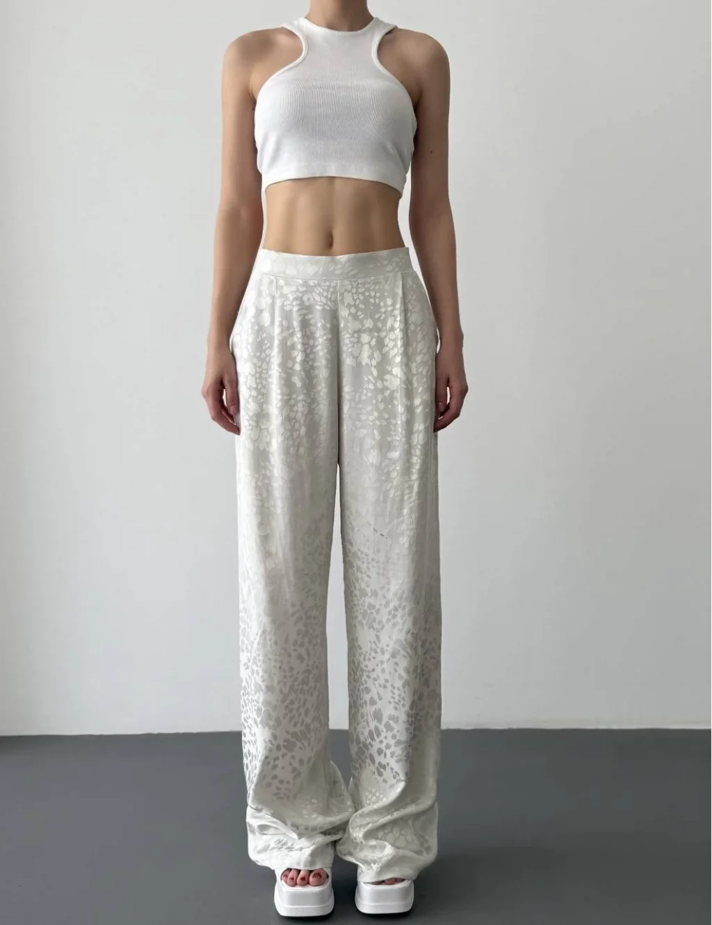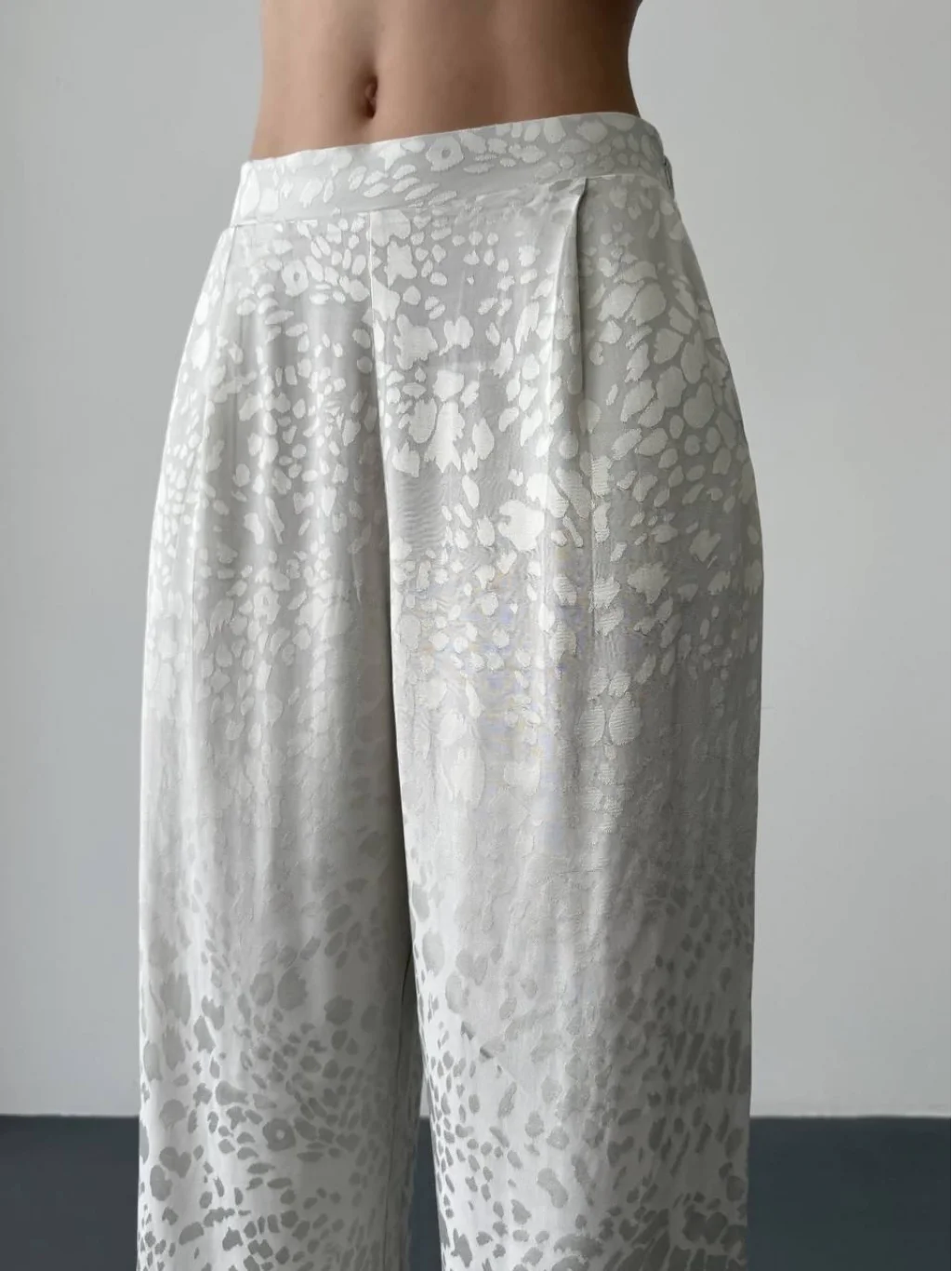 MYRA'nın şık ve şık leopar desenli saten pantolonu ile tarzınızı tamamlayın.