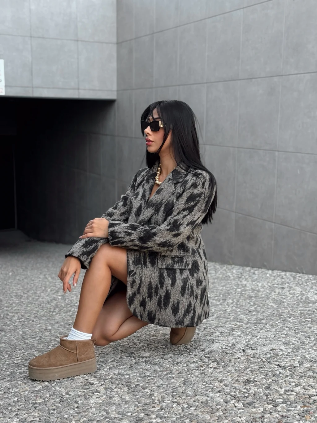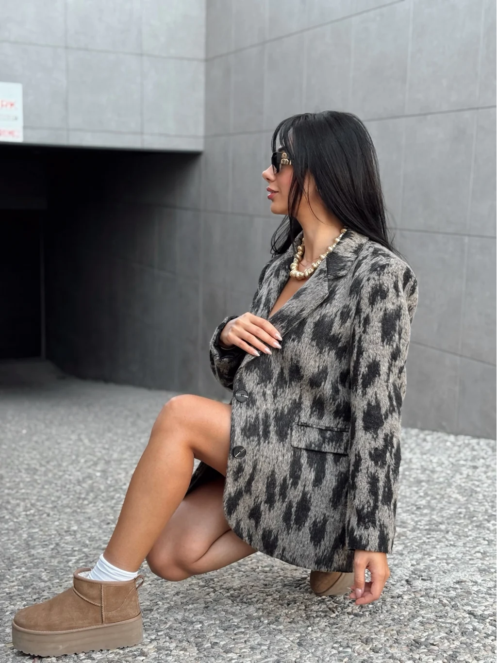 Jakar Desenli Dokulu Blazer Ceket Siyah