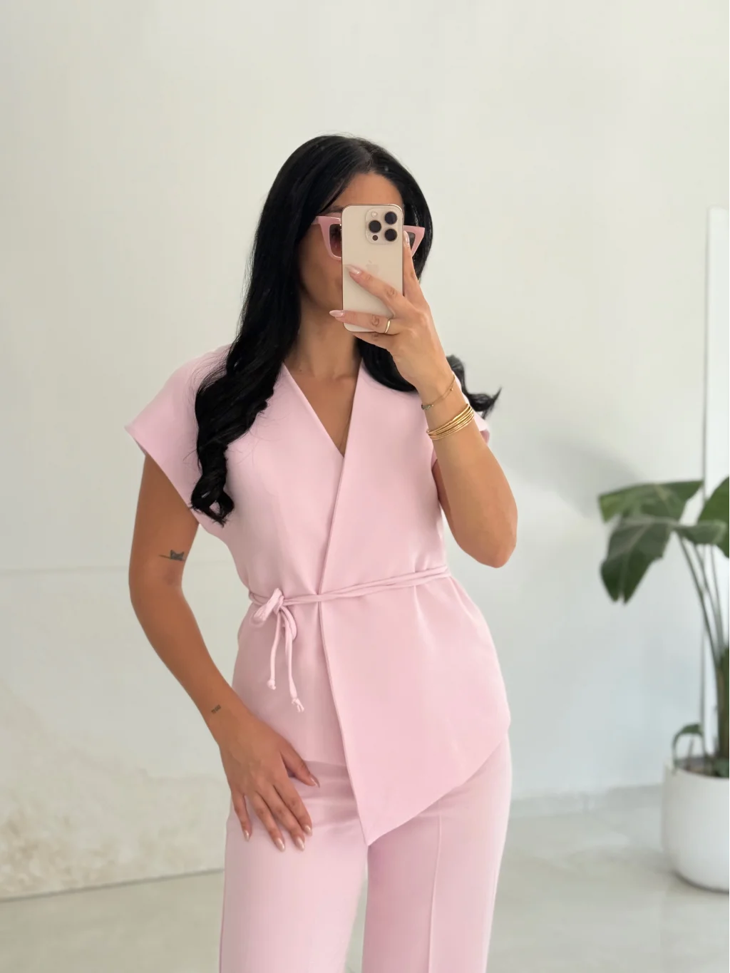 Luna Bağlamalı Yelek Pantolon Takım-Pembe
