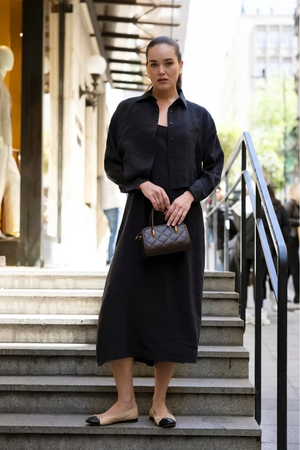 Minimalist stiliyle gardırobunuzun vazgeçilmezi olacak bu ikili takımı, düz babetlerle tamamlayarak şehir şıklığını yakalayabilirsiniz.