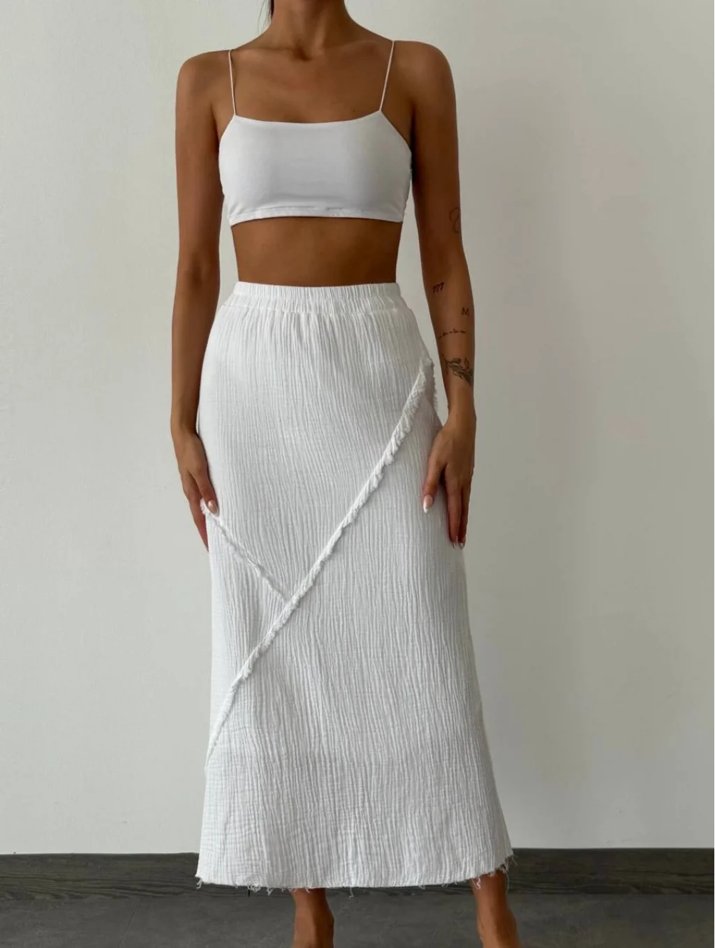 MİDİ BOY ASTARLI KETEN ETEK BEYAZ