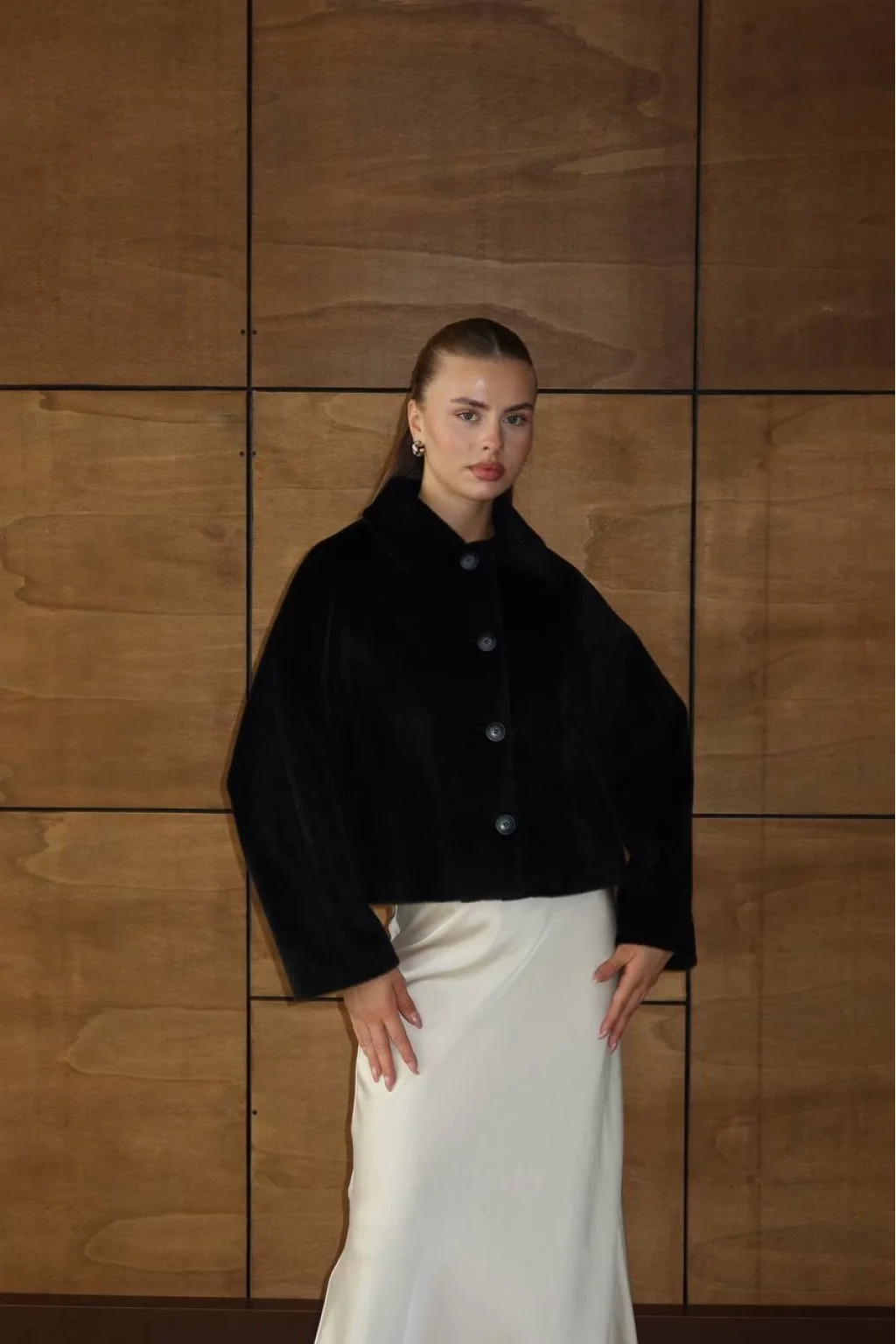 Ön düğme kapamalı, yan iki cepli, iç astarlı premium kalite kürk ceket.