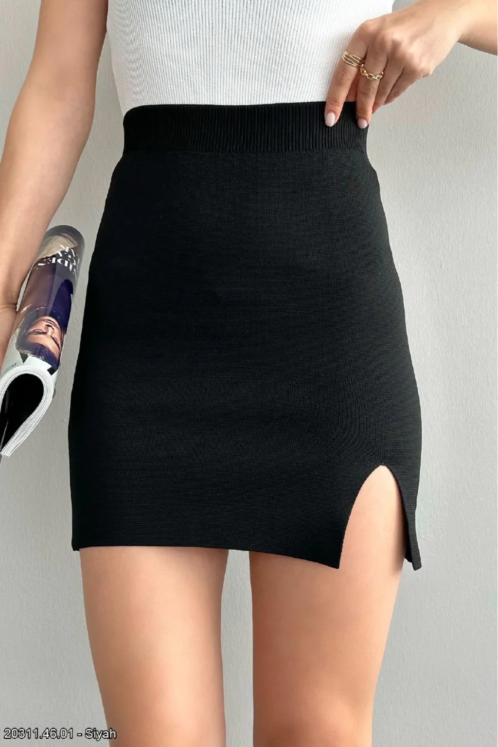 MİNİ YIRTMAÇLI TRİKO SİYAH ETEK