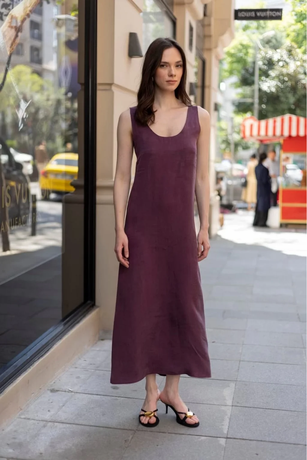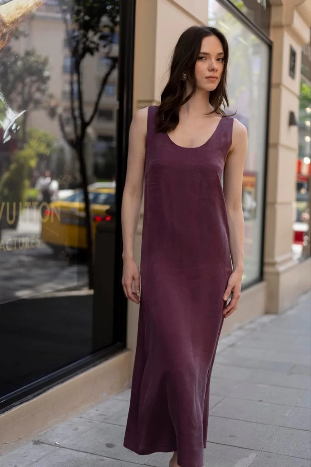 Modal Kumaş Uzun Kolsuz Bordo Elbise