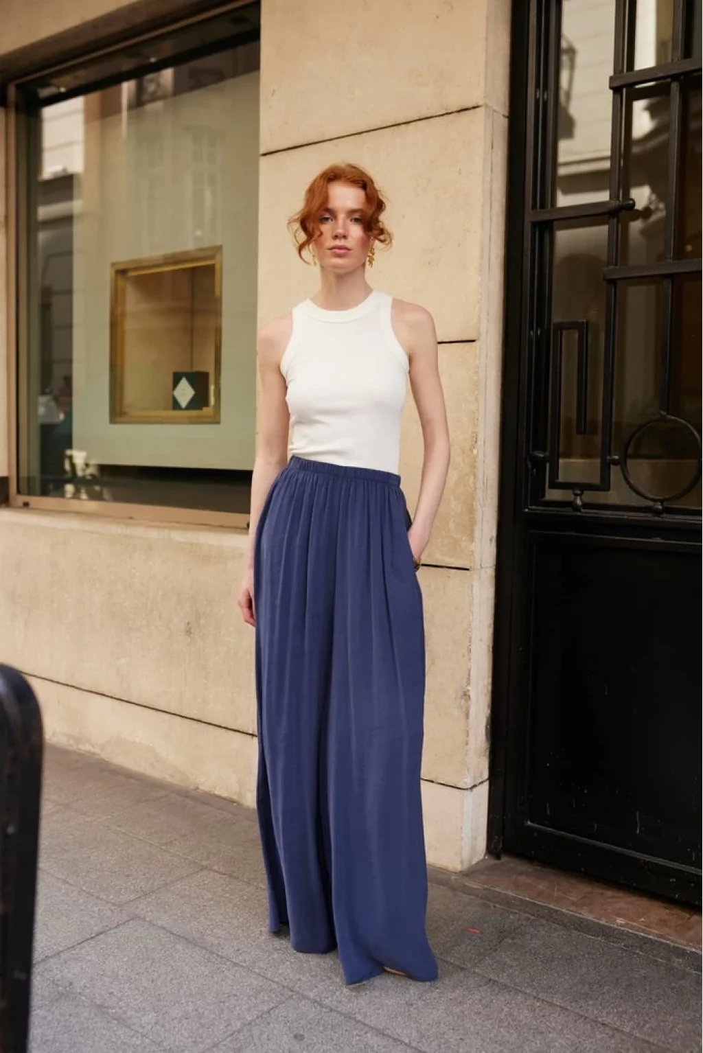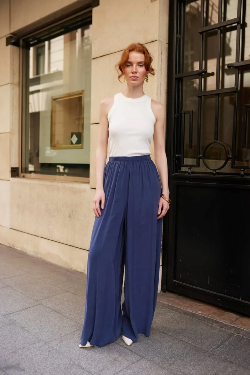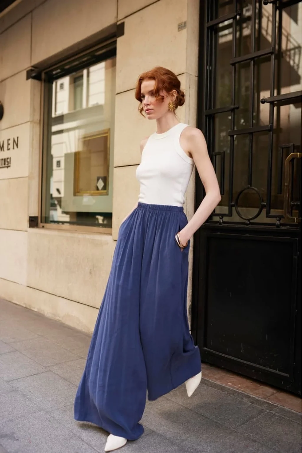Modal Kumaş Bol Kesim Pantolon-Lacivert