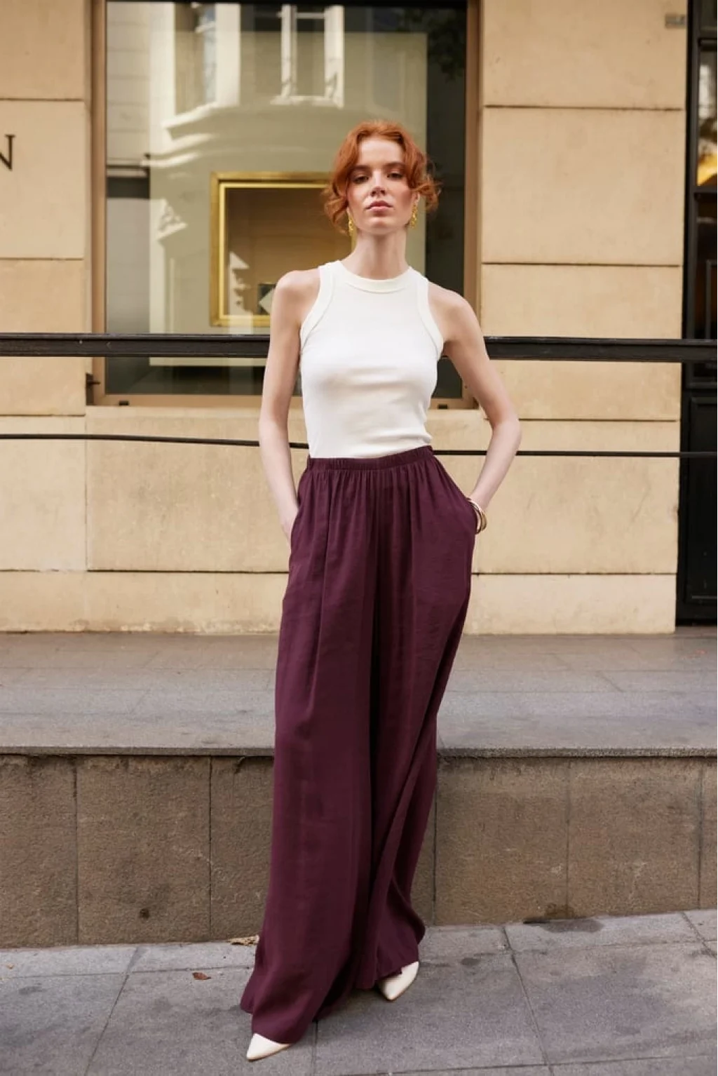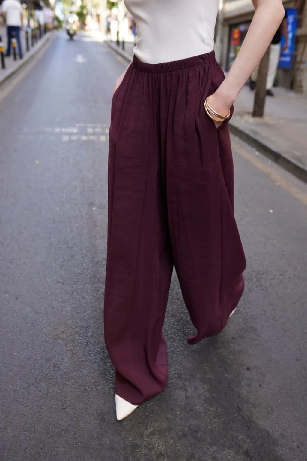 Modal Kumaş Bol Kesim Pantolon-Mürdüm