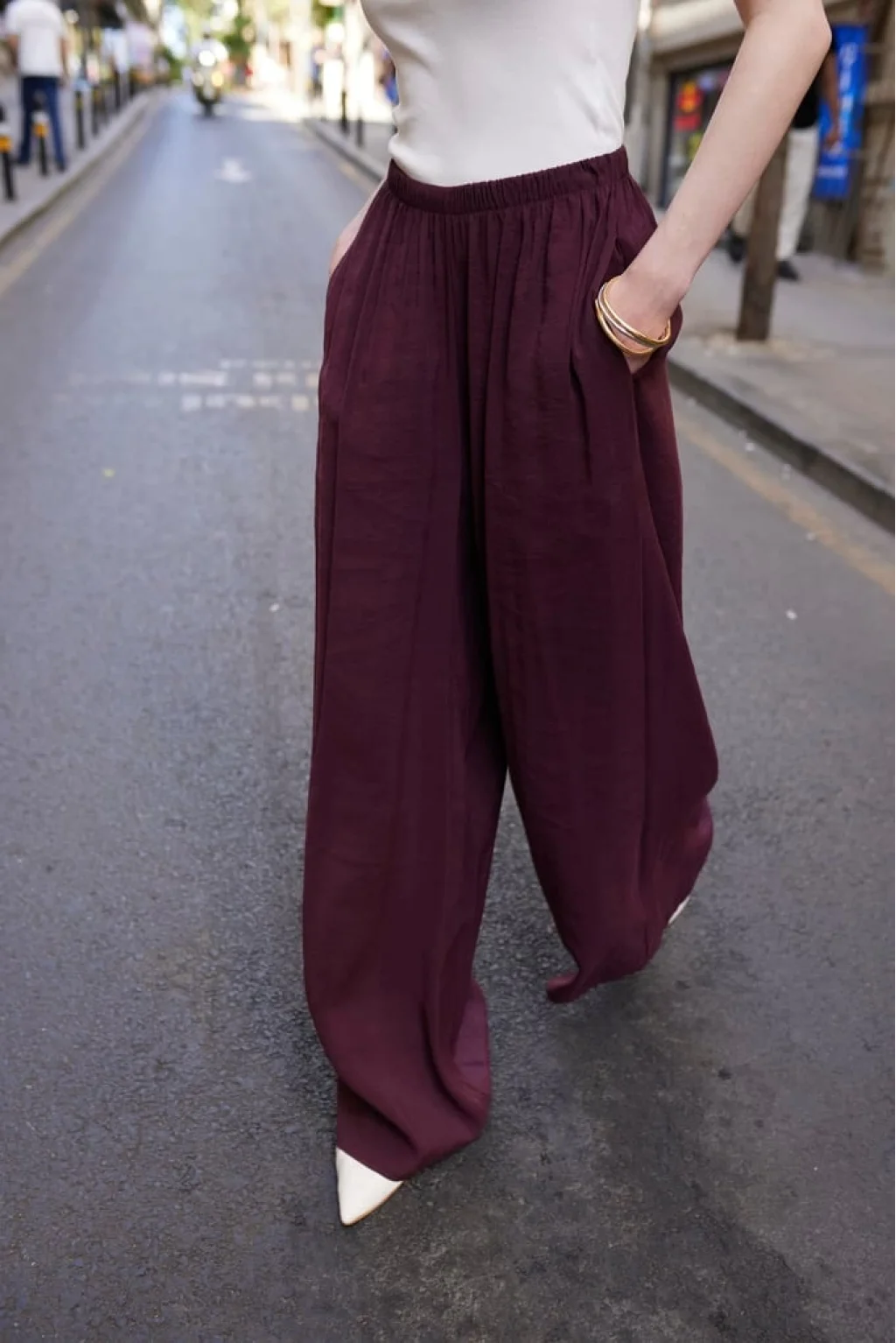 Doğal modal kumaşıyla gün boyu nefes alabilen, hafif ve akıcı yapısıyla konforu stille buluşturan Serin Esinti Pantolon, yaz gardırobunun vazgeçilmez parçası olmaya aday. Yüksek bel kesimi ve bol paça formu ile hem rahat hem zarif bir duruş sunar. Basic tişörtlerle gündüz şıklığı, şık bluzlarla ise akşam kombinlerine uyum sağlar.