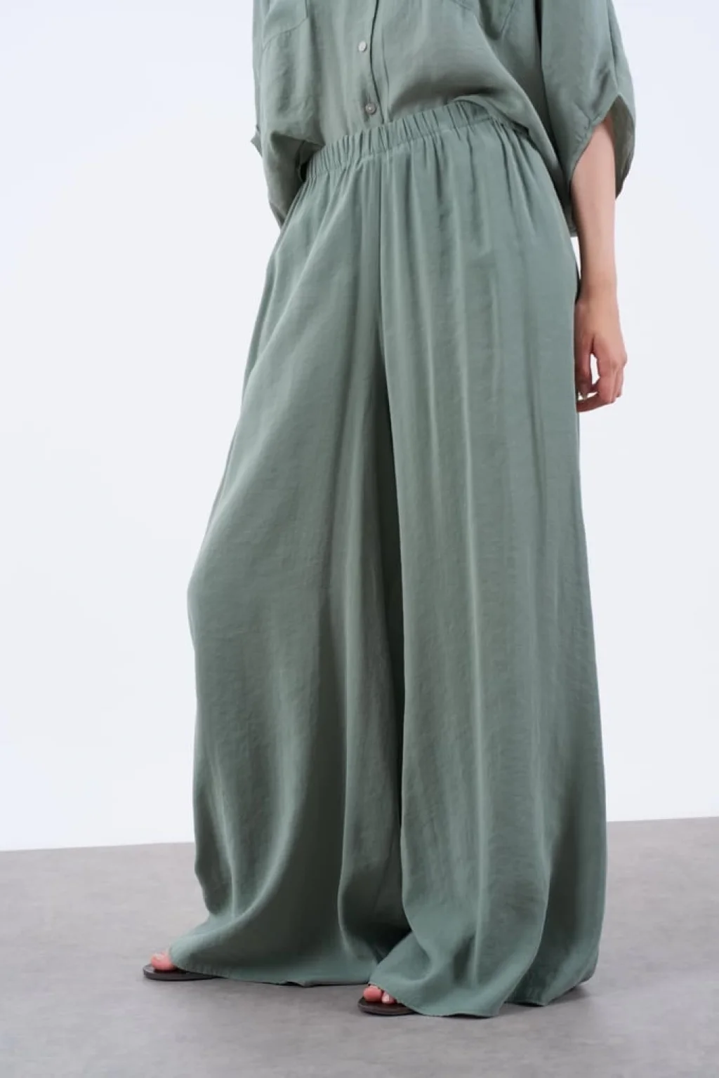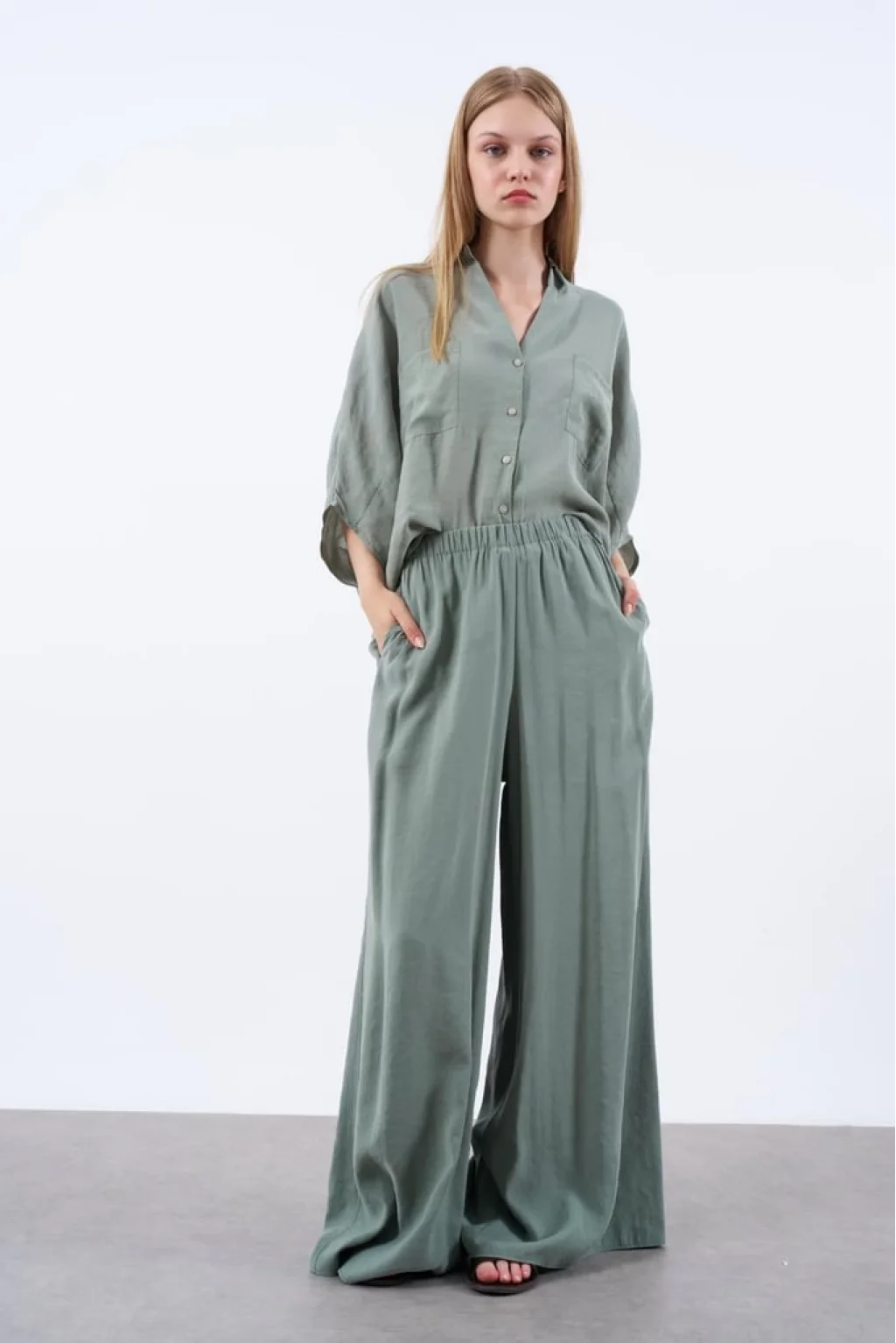 Modal Kumaş Bol Kesim Pantolon-Yeşil