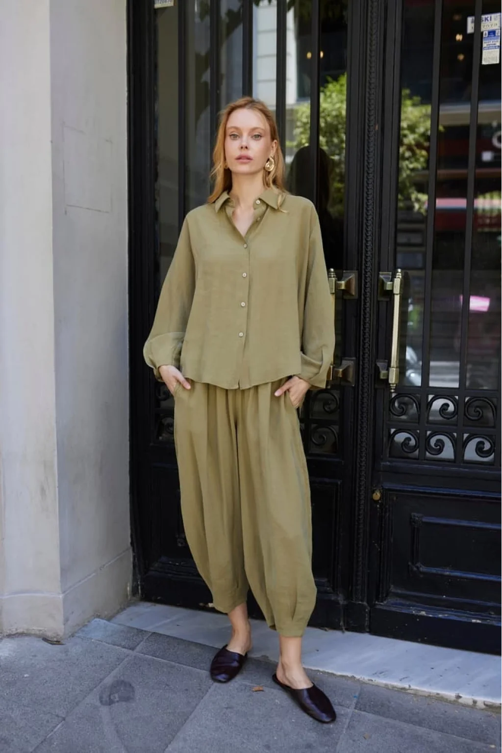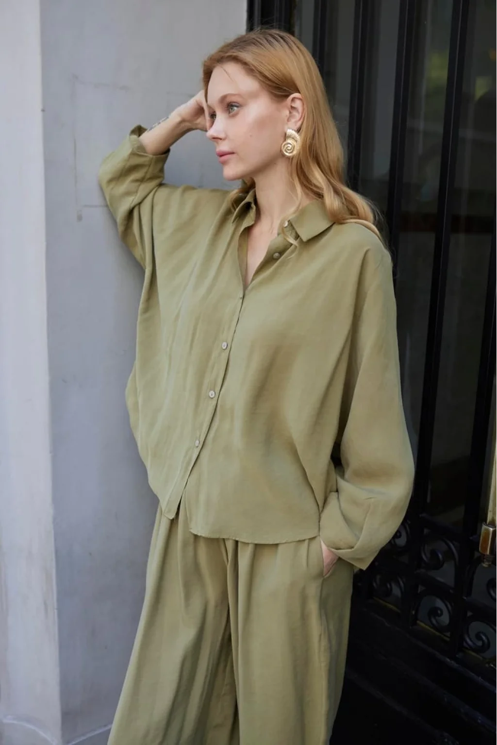 Modal Kumaş Gömlek Pantolon İkili Takım-Haki