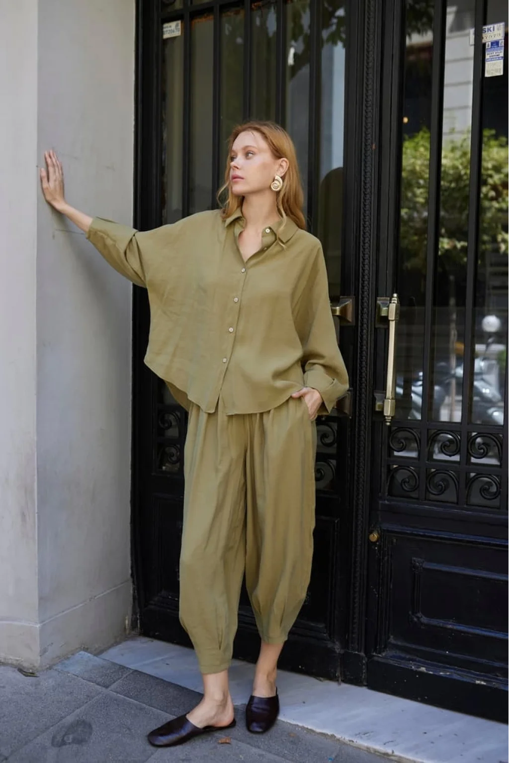 • MYRA modal kumaş haki gömlek pantolon ikili takım, şıklığı ve rahatlığı bir arada sunar.