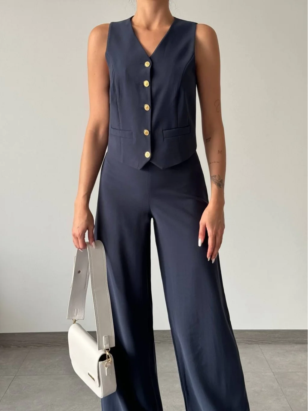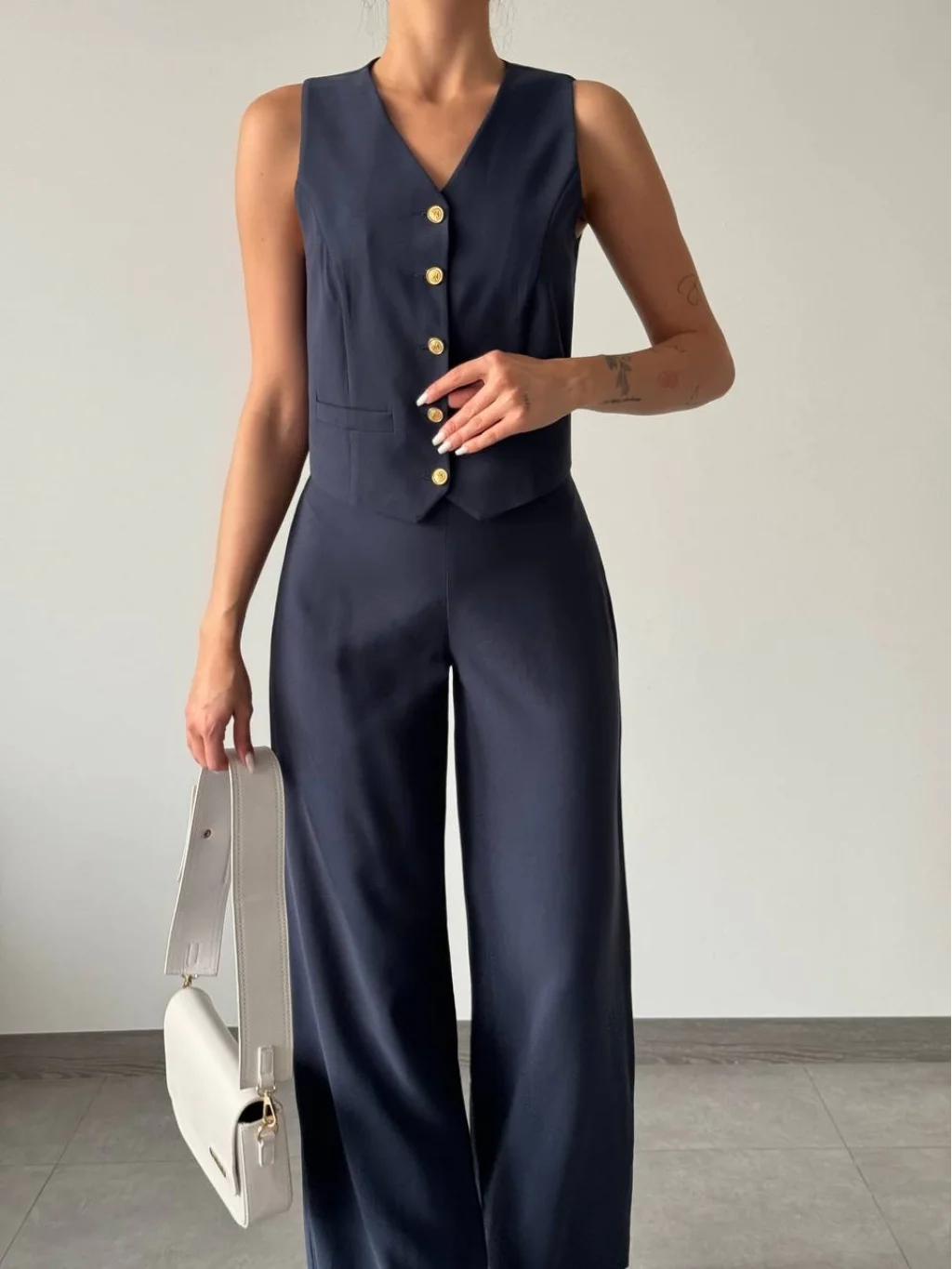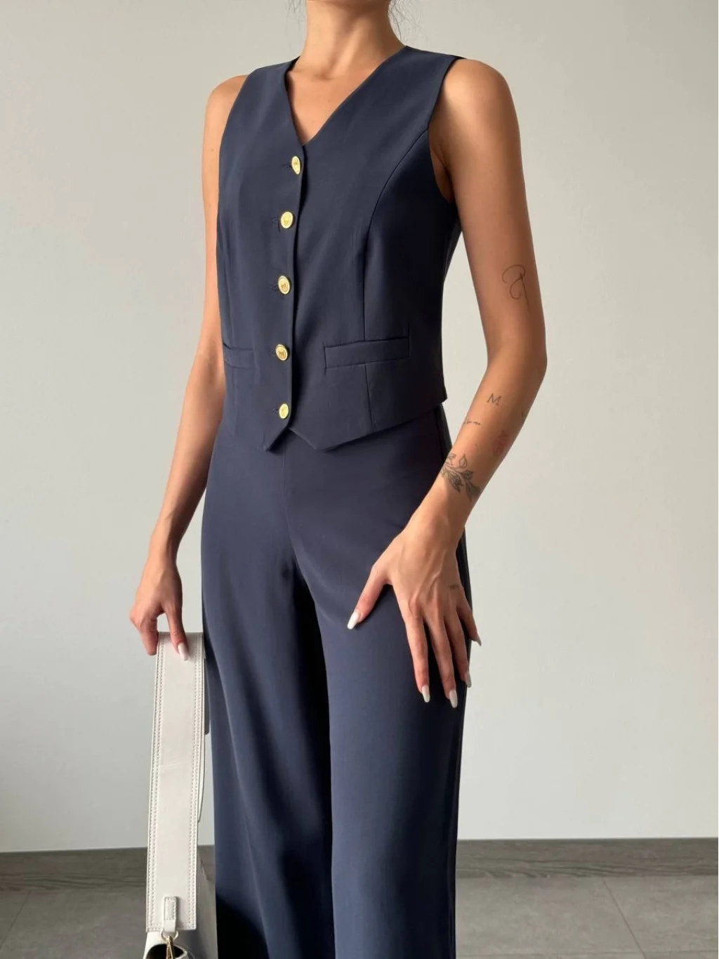 Modal Kumaş Yelek Pantolon Takım Lacivert