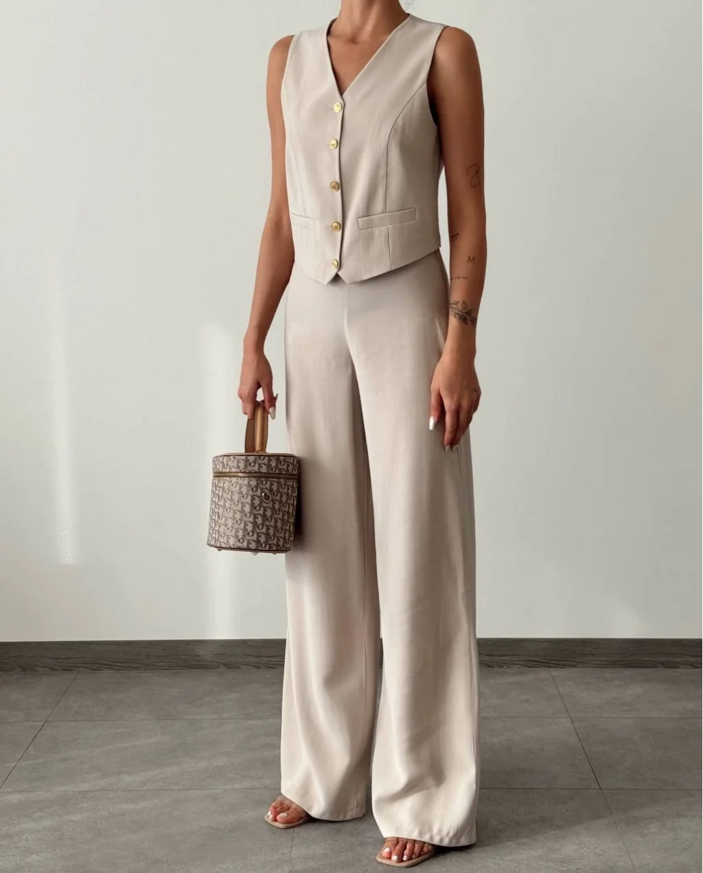 Gold Düğme Kapamalı İç Astarlı Yelek
