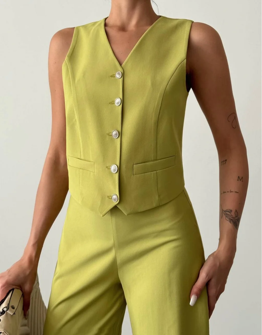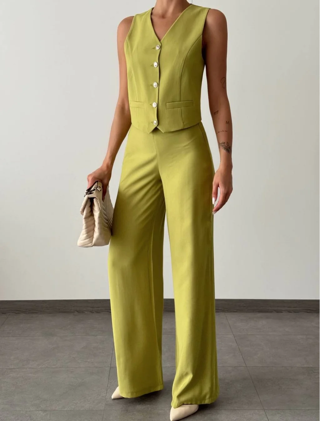 Modal Kumaş Yelek Pantolon Takım Kivi