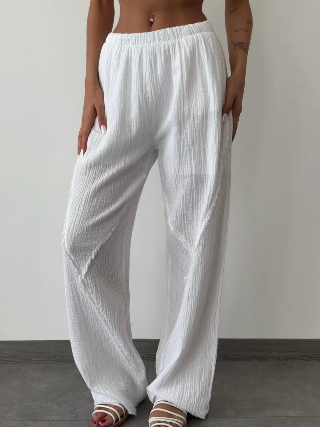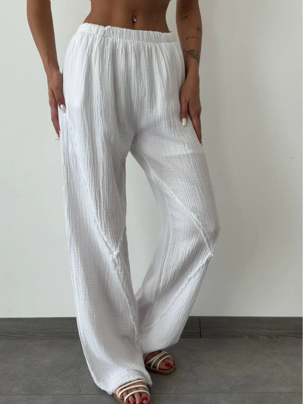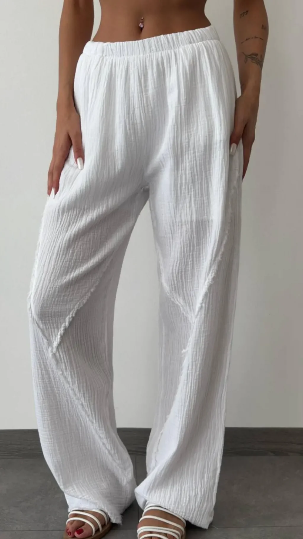 MÜSLİN KUMAŞ ASTARLI BEYAZ PALAZZO PANTOLON