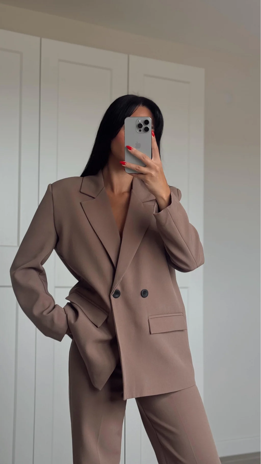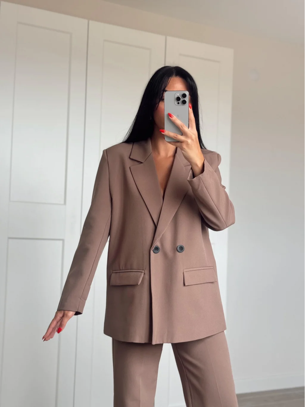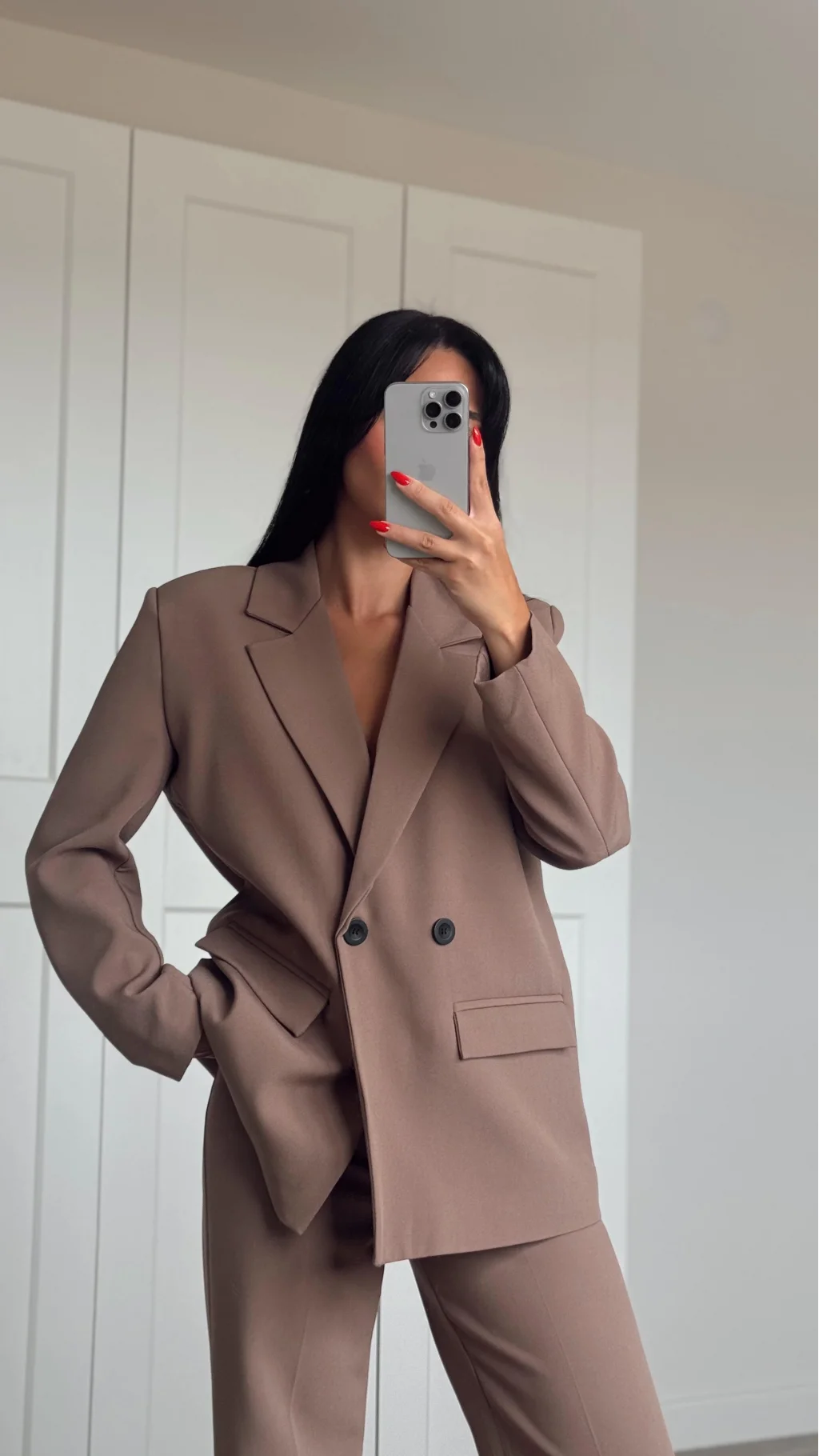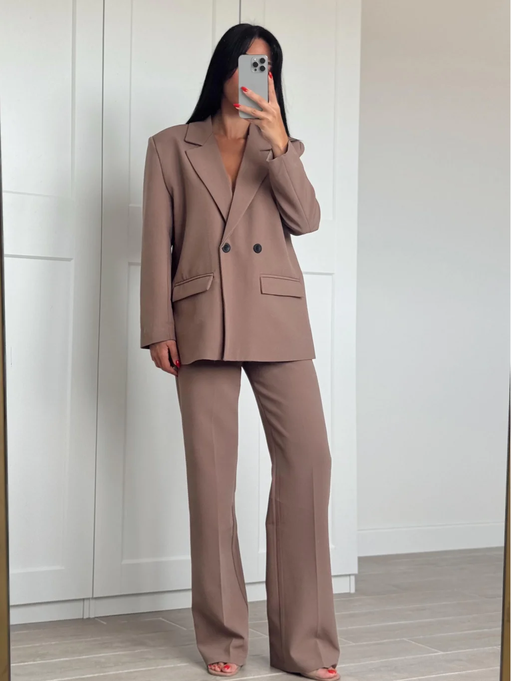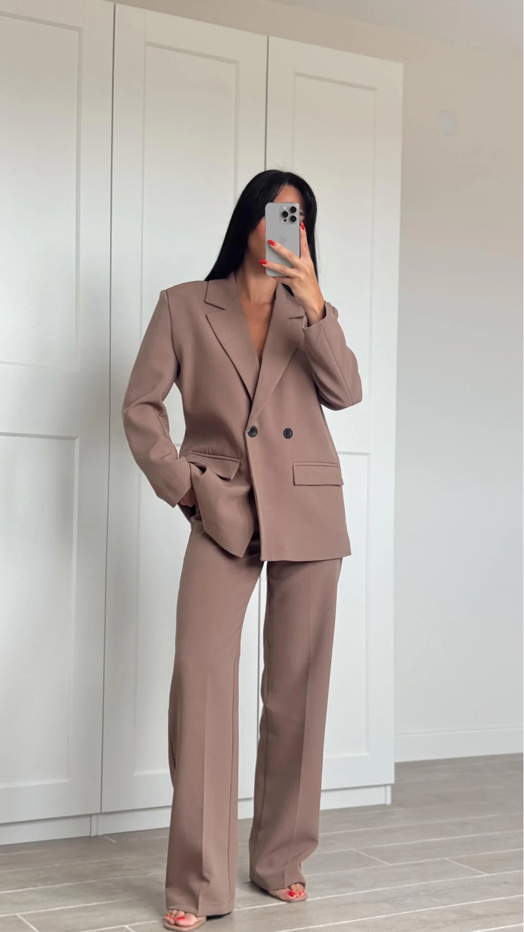 MYRA  ATLAS KUMAŞ BLAZER CEKET YÜKSEK BEL PANTOLON TAKIM KAHVERENGİ