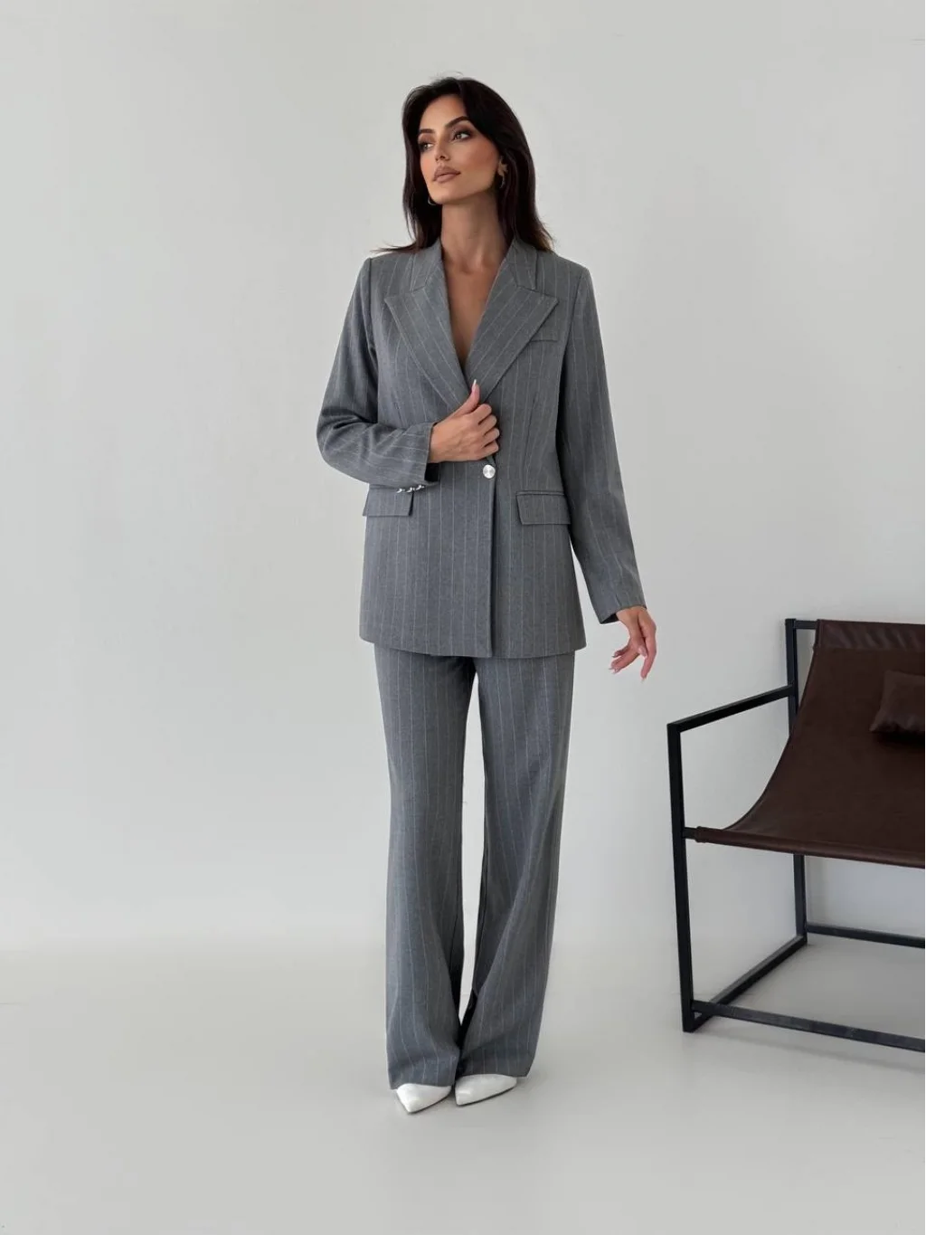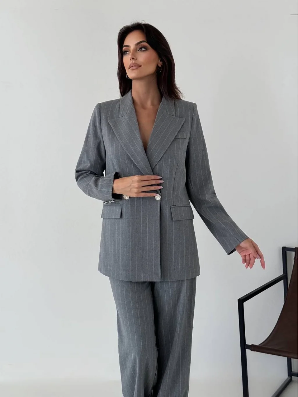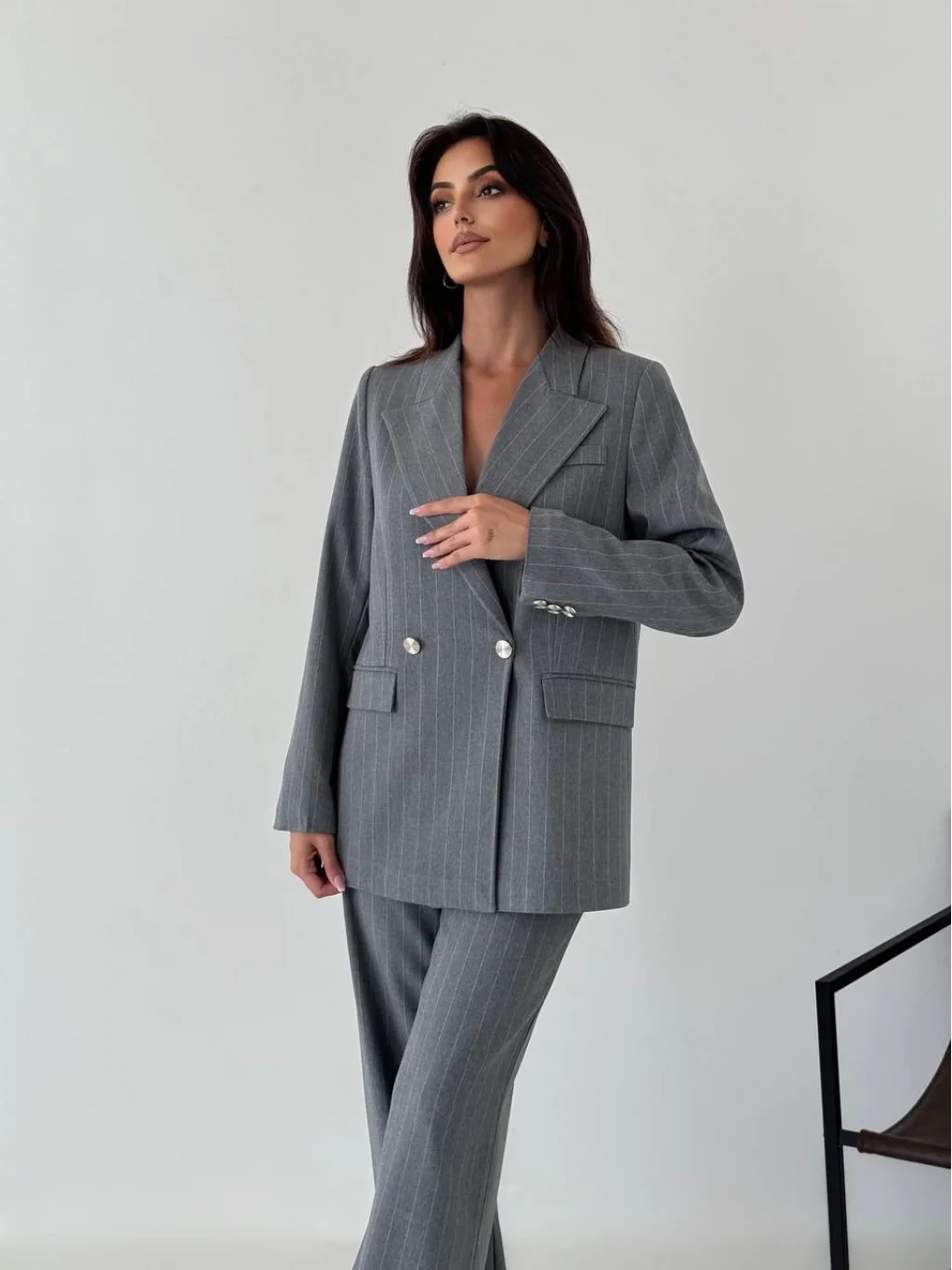 Premium Serisi Çizgili Ceket Pantolon Takım