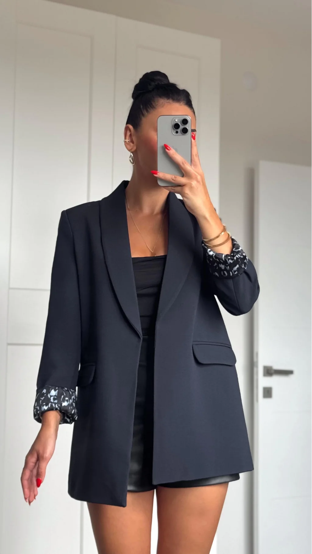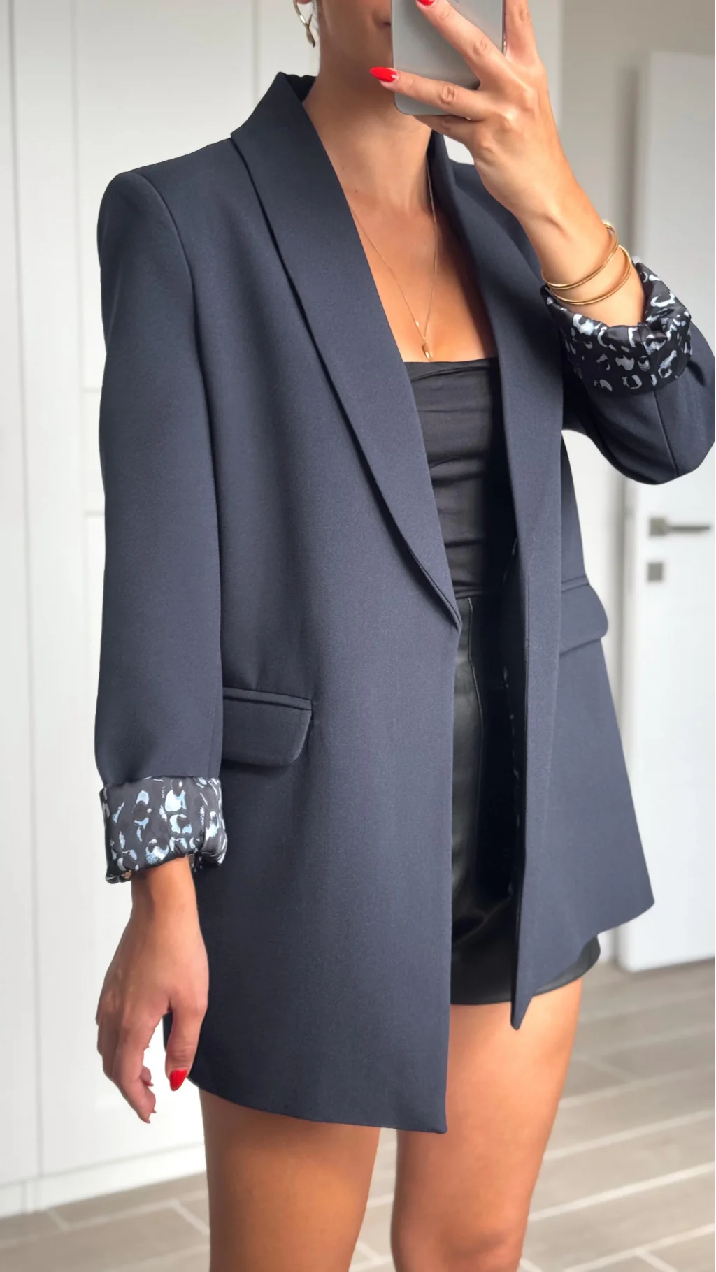 Myra Leopar Astarlı Şal Yaka Blazer Ceket Lacivert