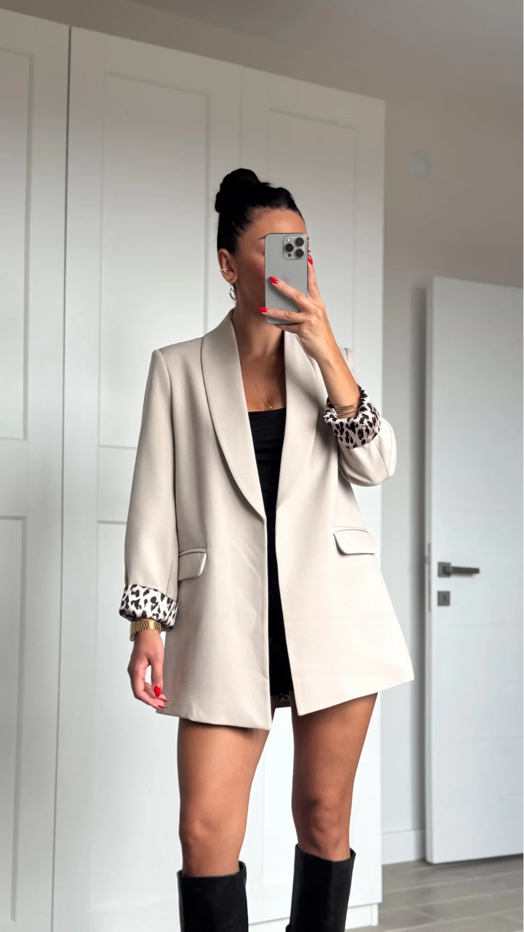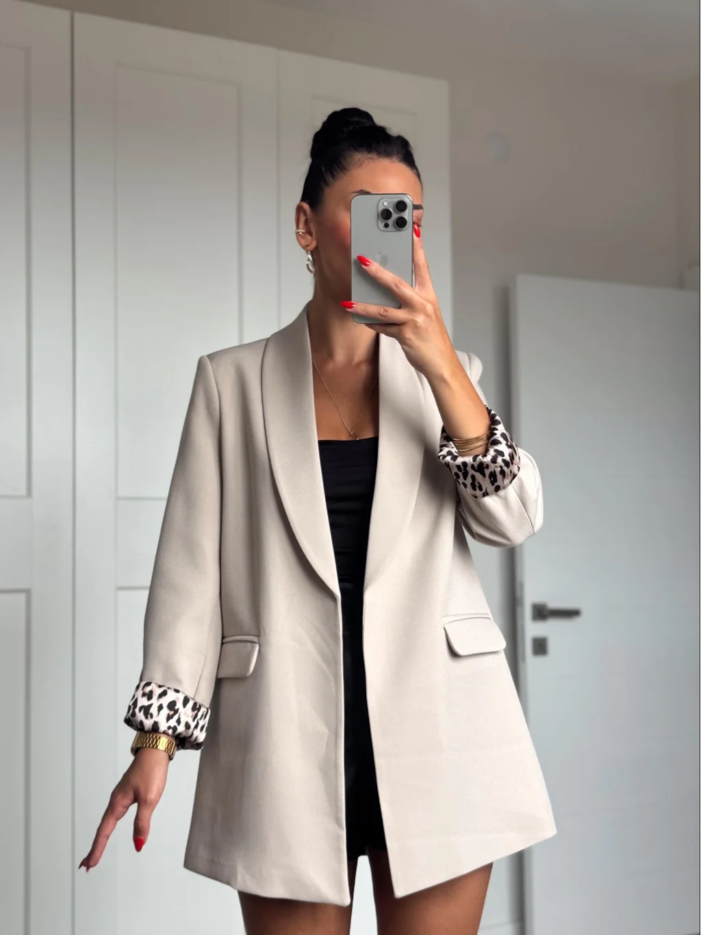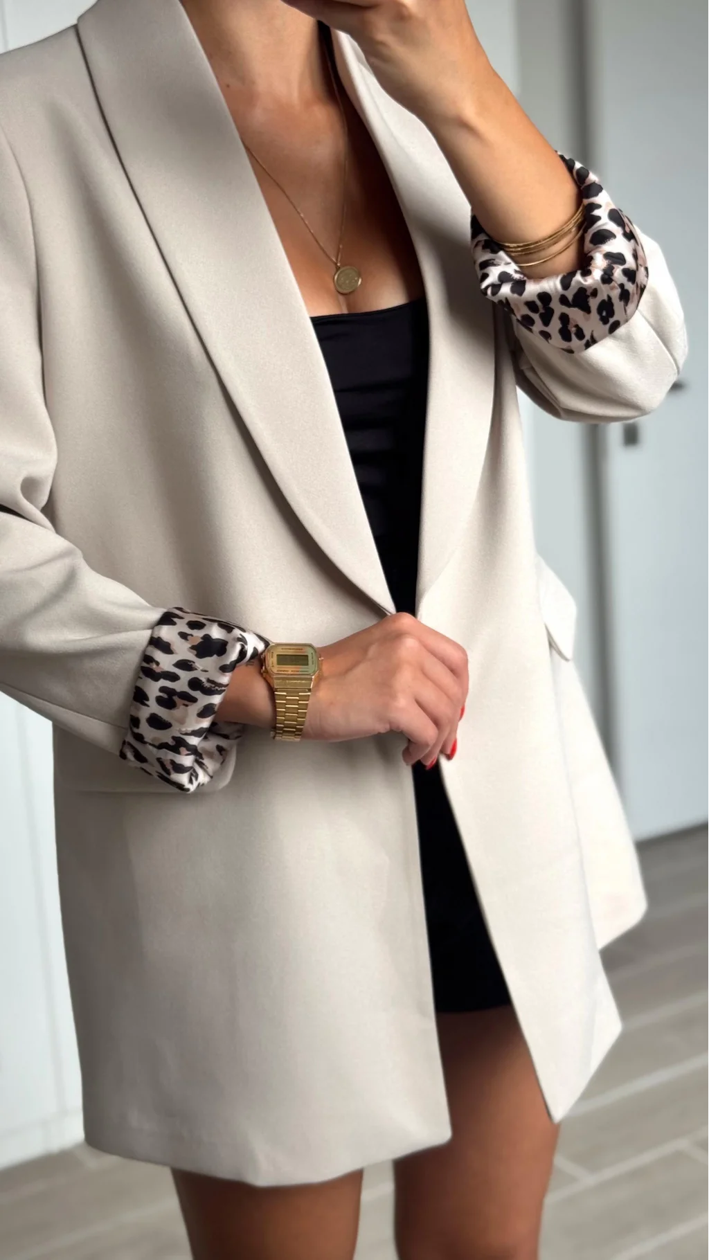 Myra Leopar Astarlı Şal Yaka Blazer Ceket Taş