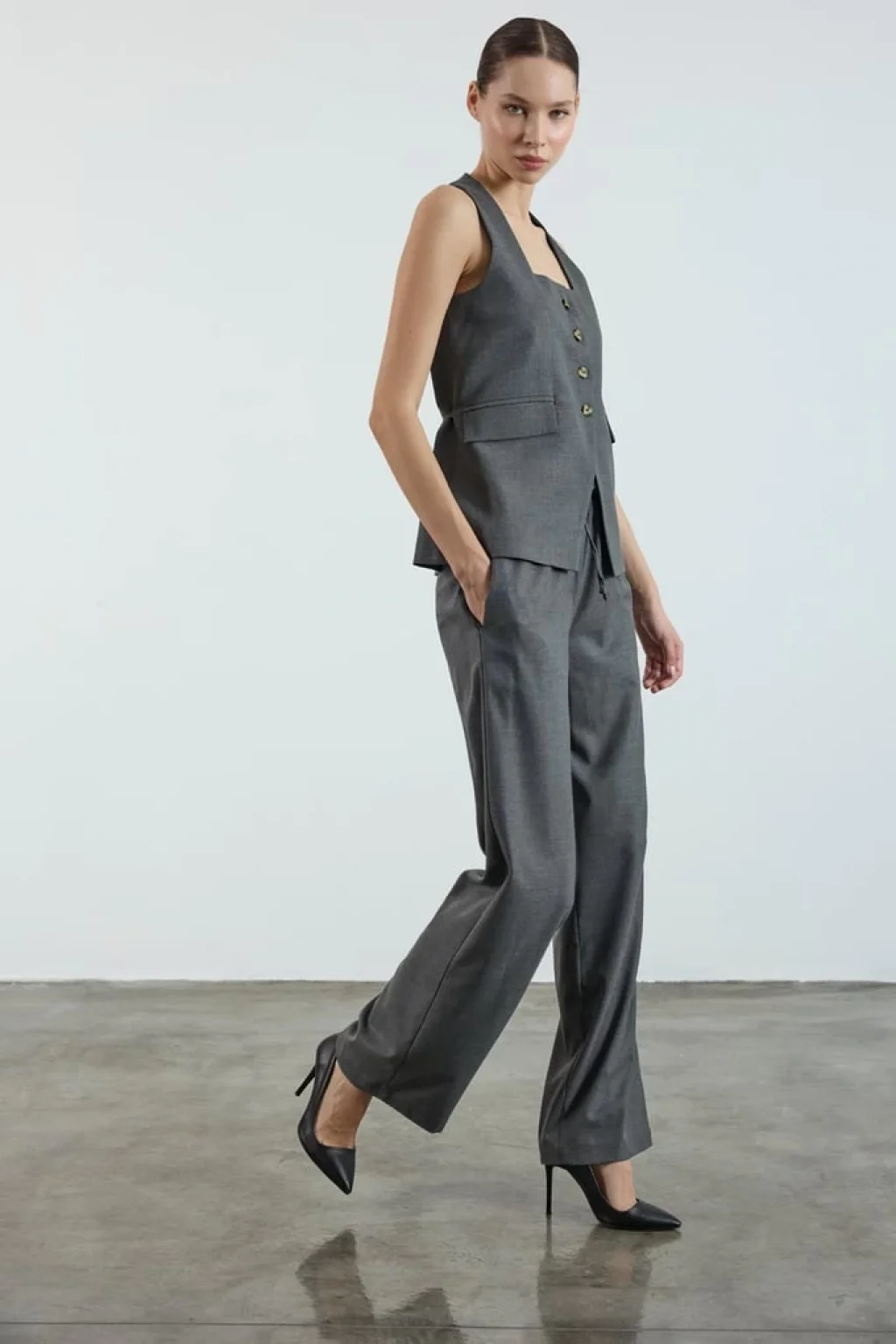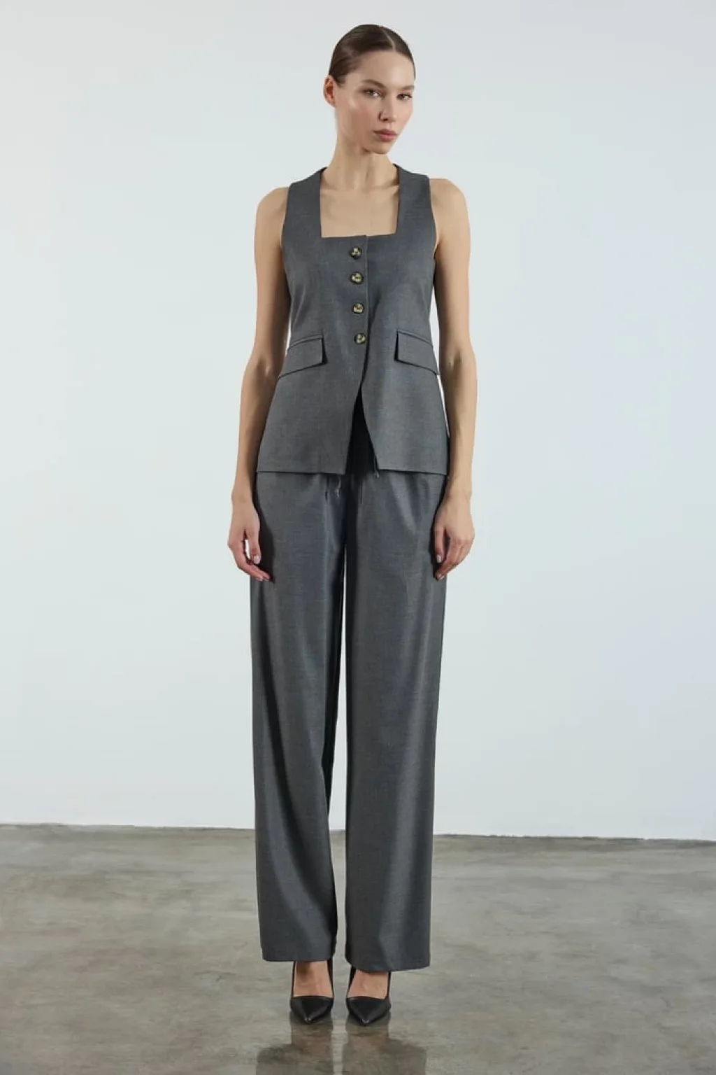 Myra Kadın Antrasit Yelek Pantolon Takım