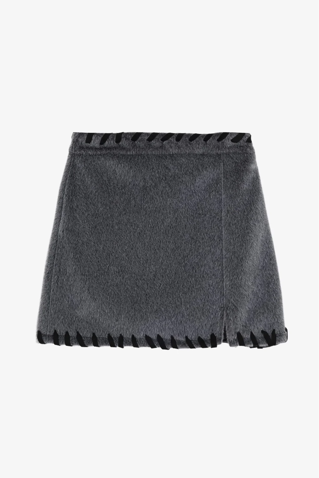Yüksek bel, yarım pat fermuar kapamalı cepsiz nakış işlemeli etek.