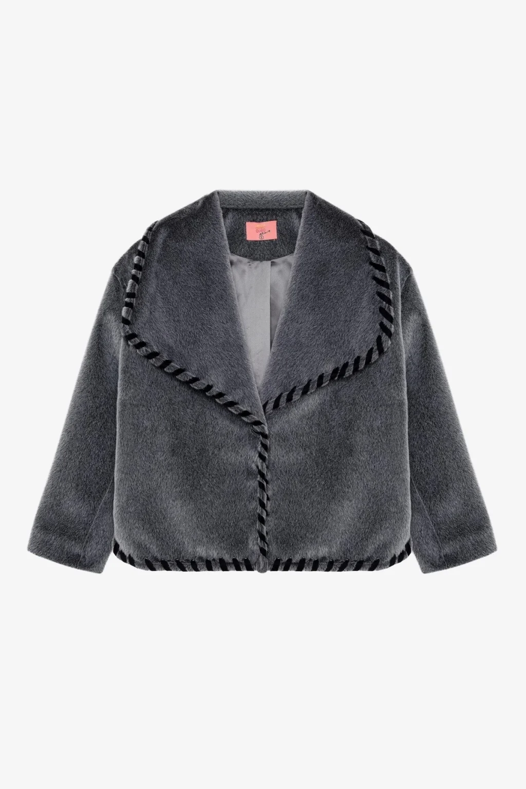 Ön tek düğme kapamalı, geniş yakalı, iç astarlı, yan iki cepli nakış detaylı kürk ceket,
