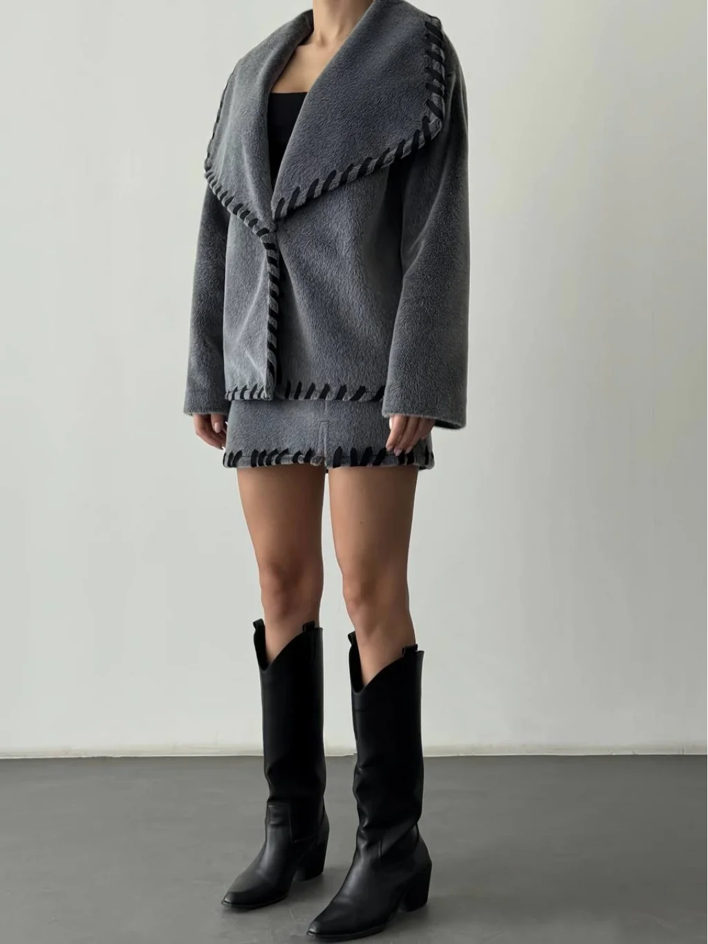 • MYRA markalı Nakış Detaylı Kürk Ceket Etek Takım-Gri, şıklığı ve zarafeti bir arada sunar. Alt üst takımın tamamlayıcı parçasıyla her an şık görünüm yakalayabilirsiniz.