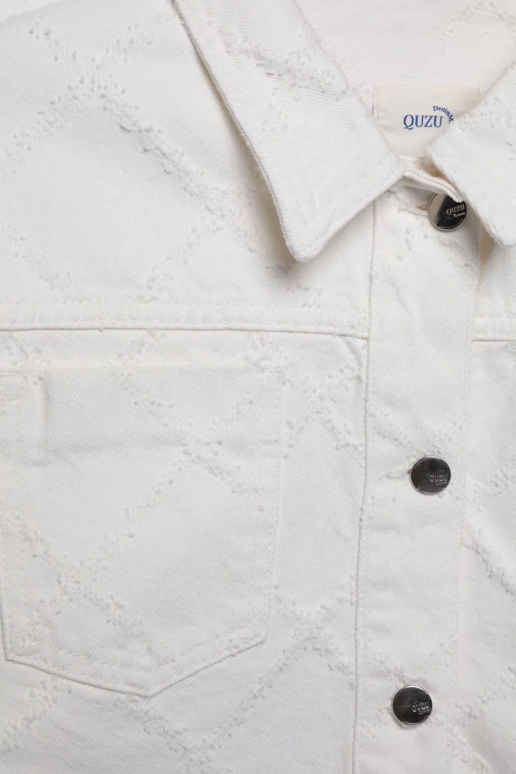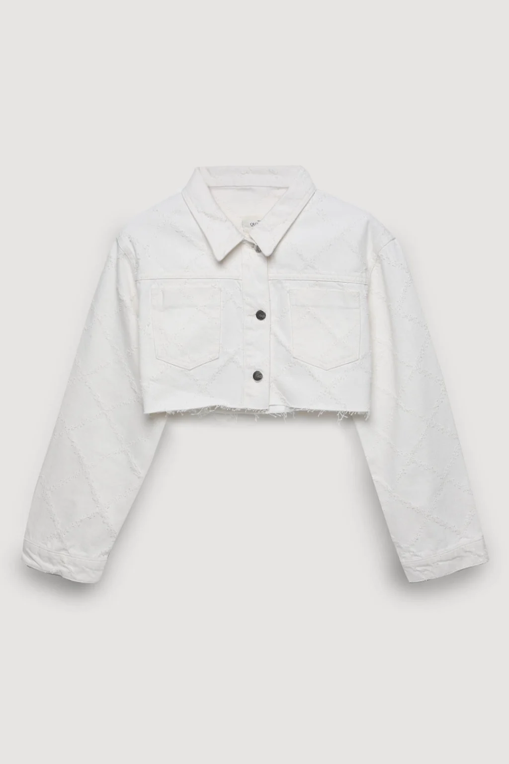 Kapitone örgü dokulu, göğüs cepli, düğme kapamalı, uzun kollu, modern ve şık görünümlü crop kot ceket.