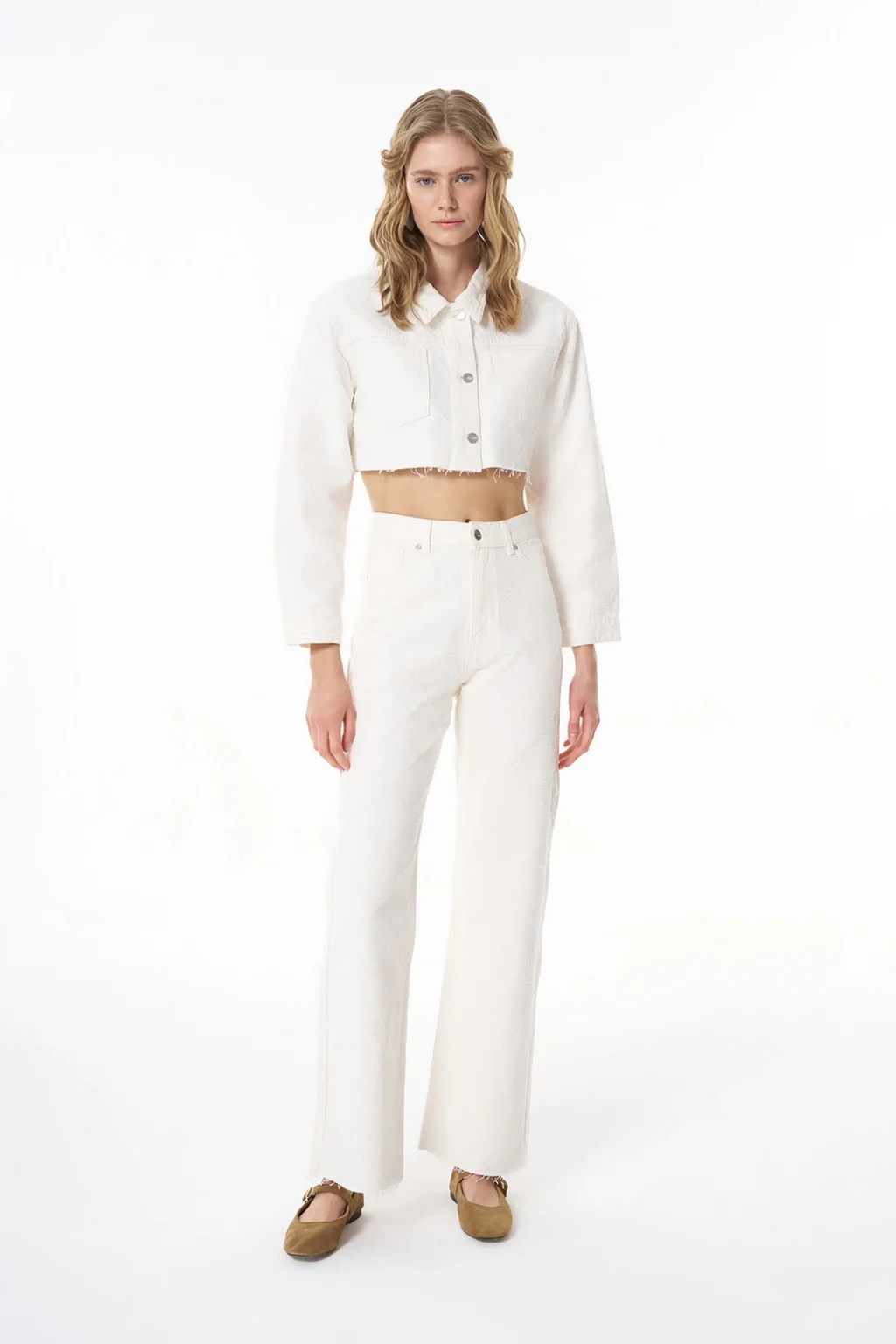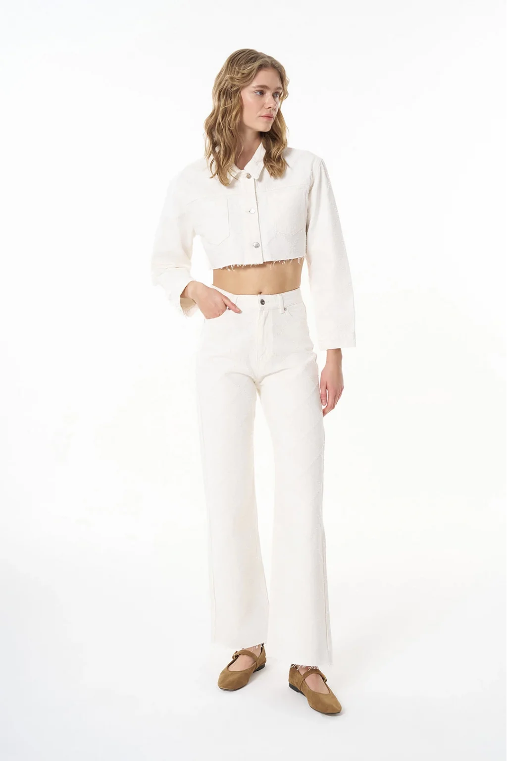 • MYRA'nın şık tasarımı olan Örgü Detaylı Paçaları Kesik Krem Kot Pantolon, gardırobunuzun favorisi olmaya aday!
