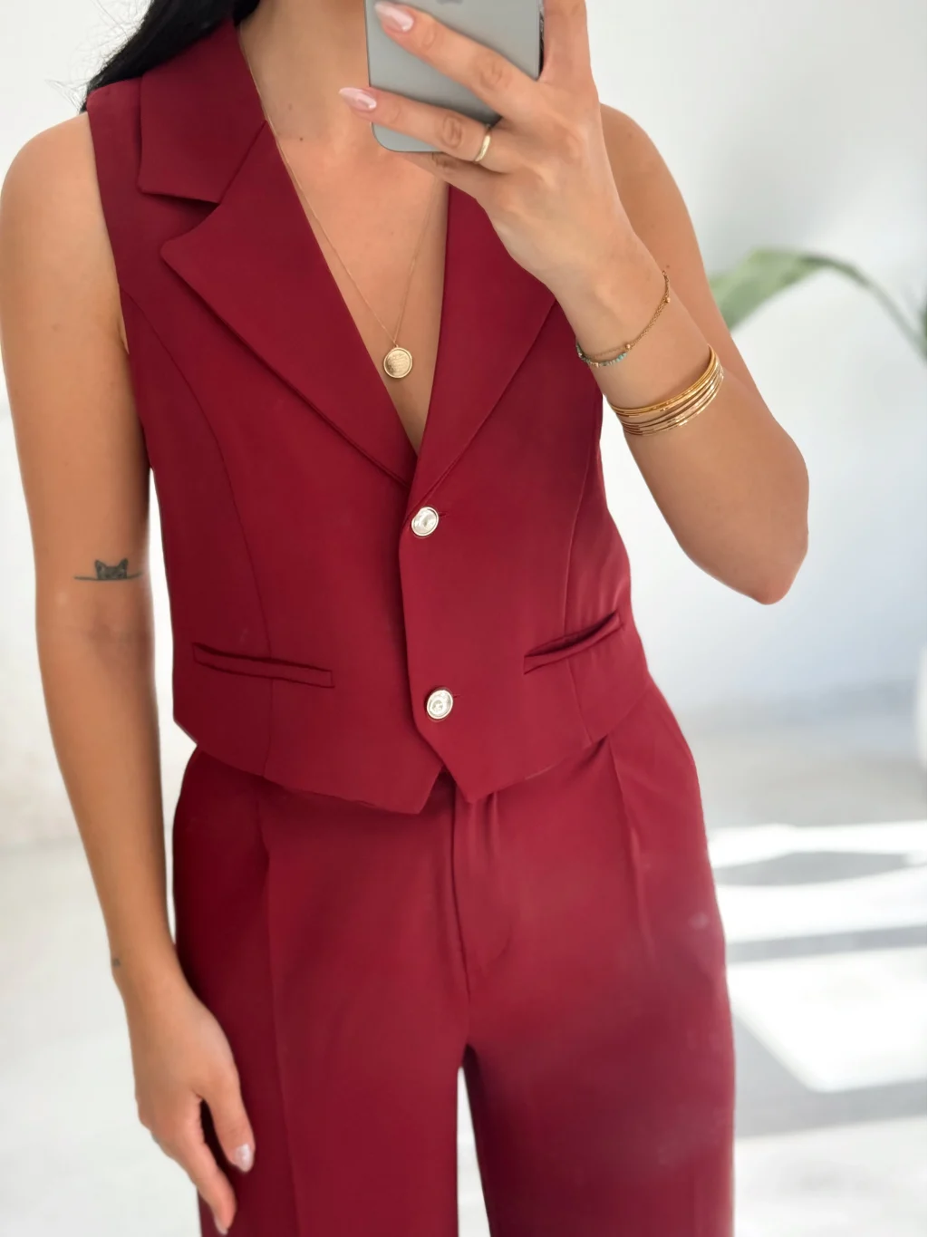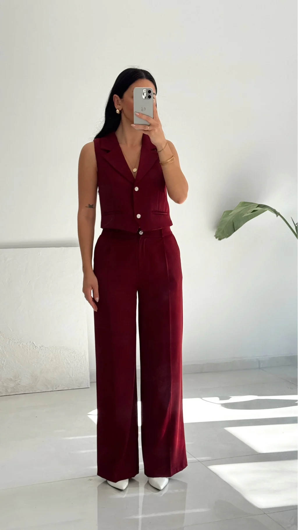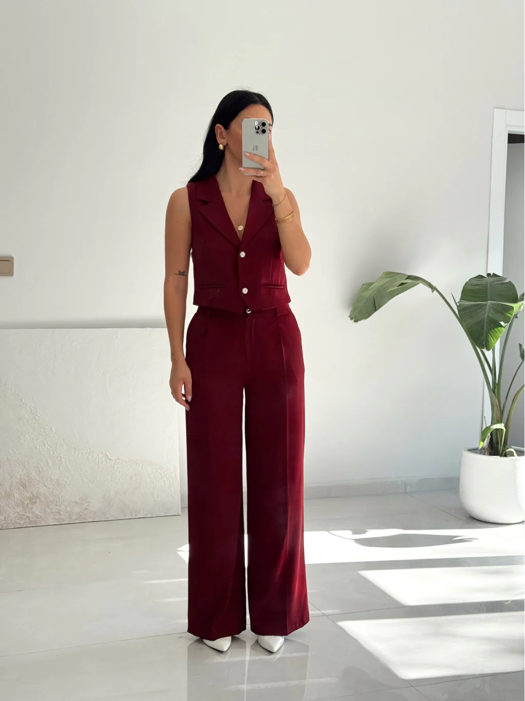 Orkide Yelek Pantolon Takım-Bordo