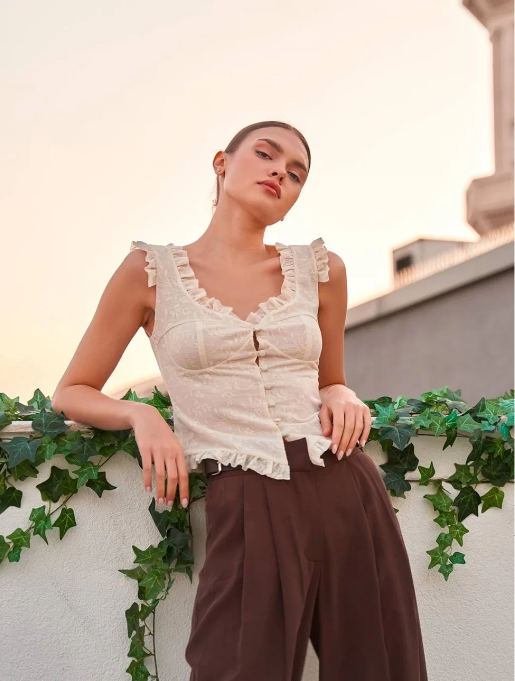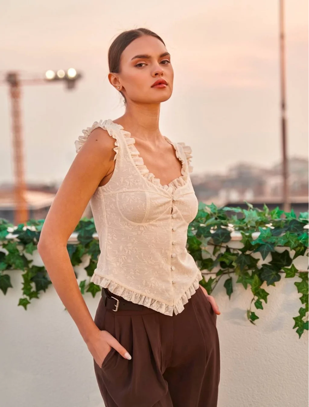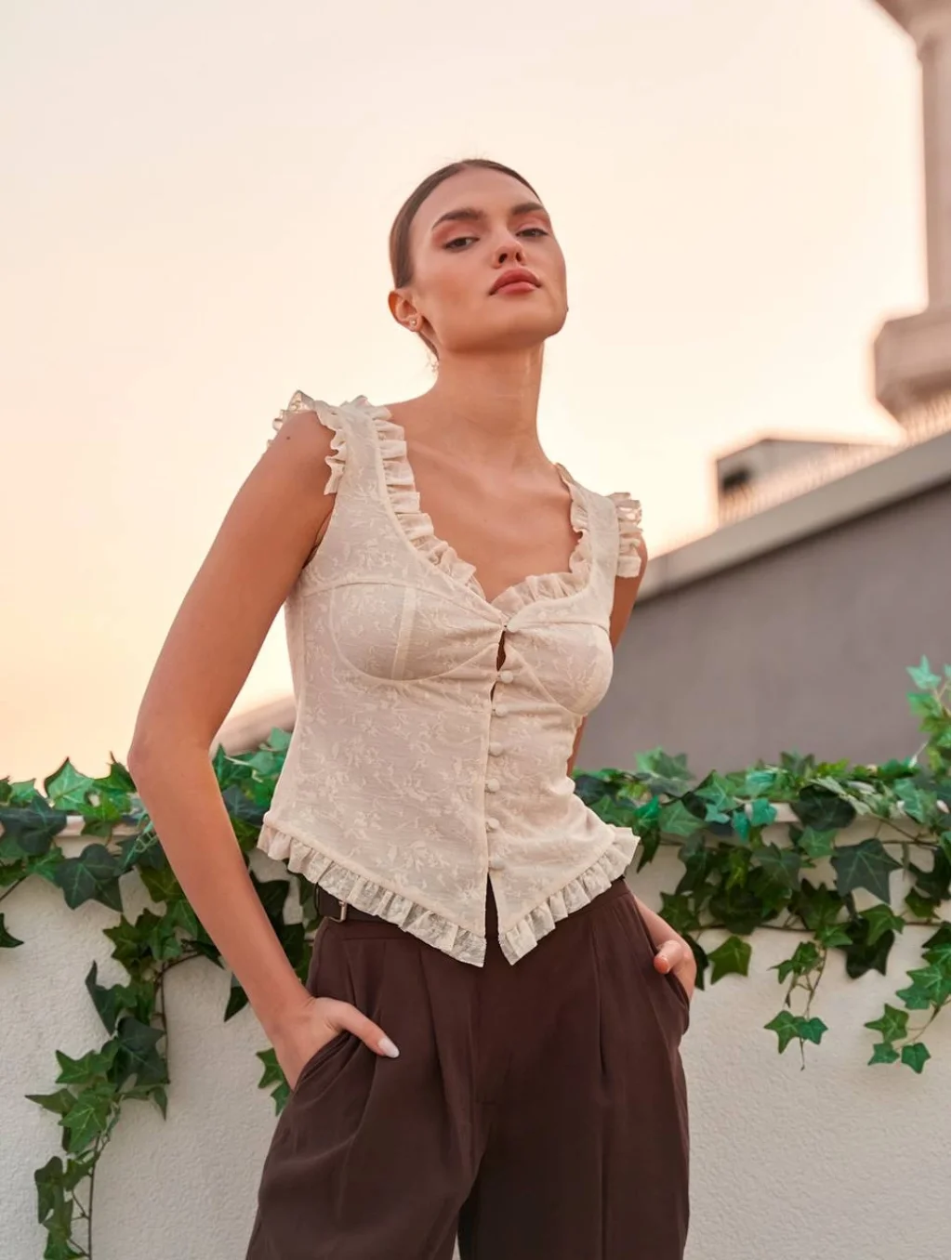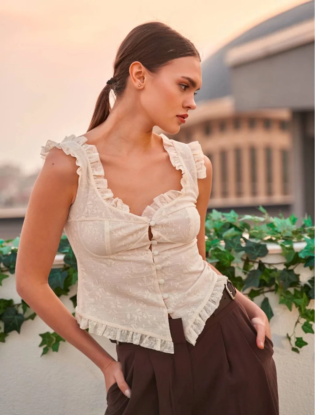 Fırfır Detaylı Dantel Bluz