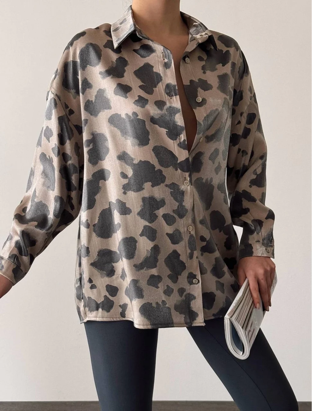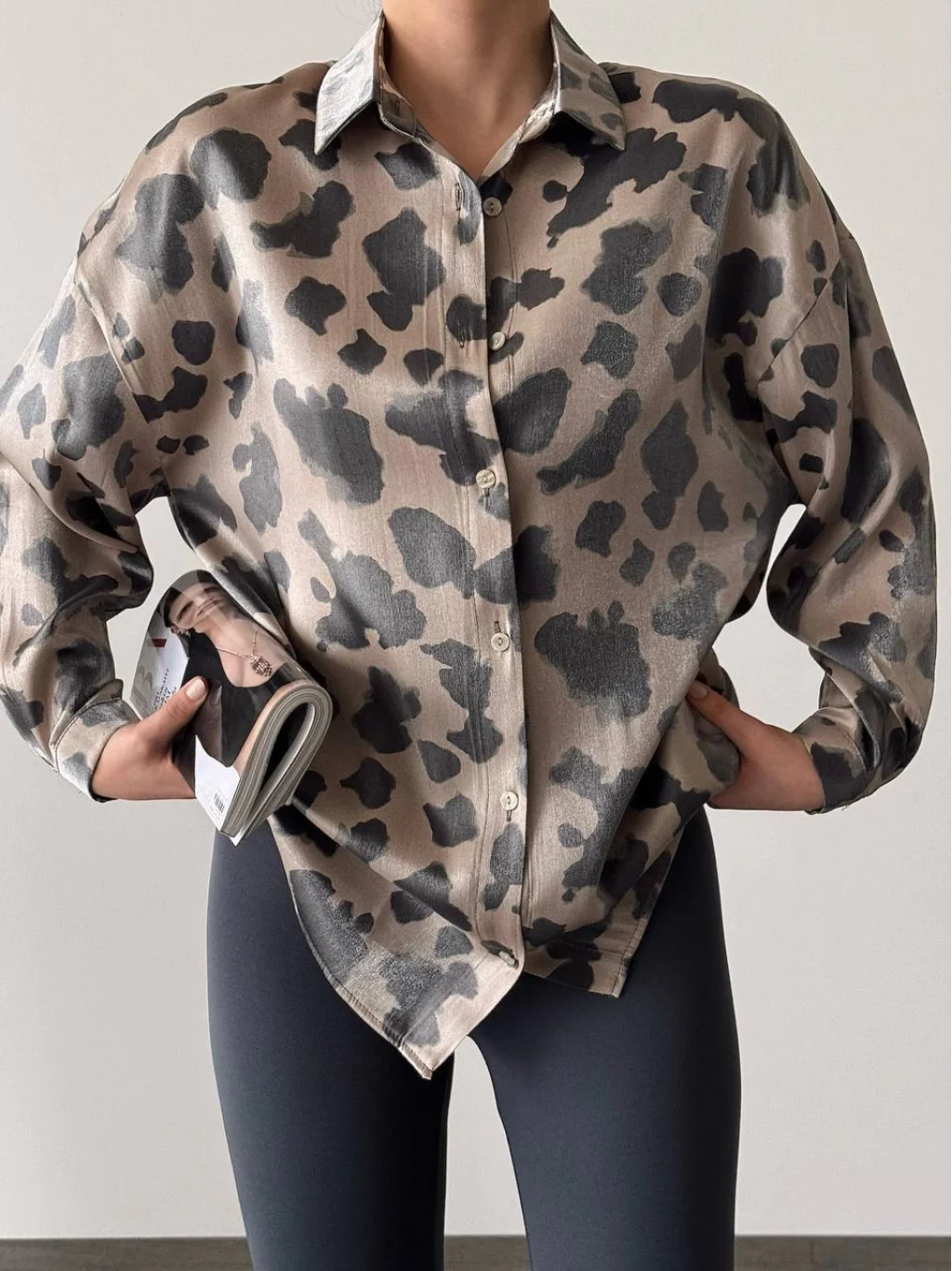 PARILTI BENEKLİ DESEN GÖMLEK VİZON