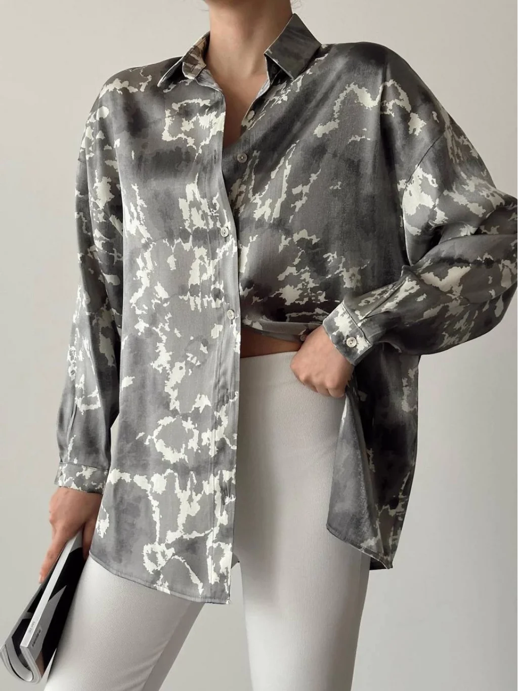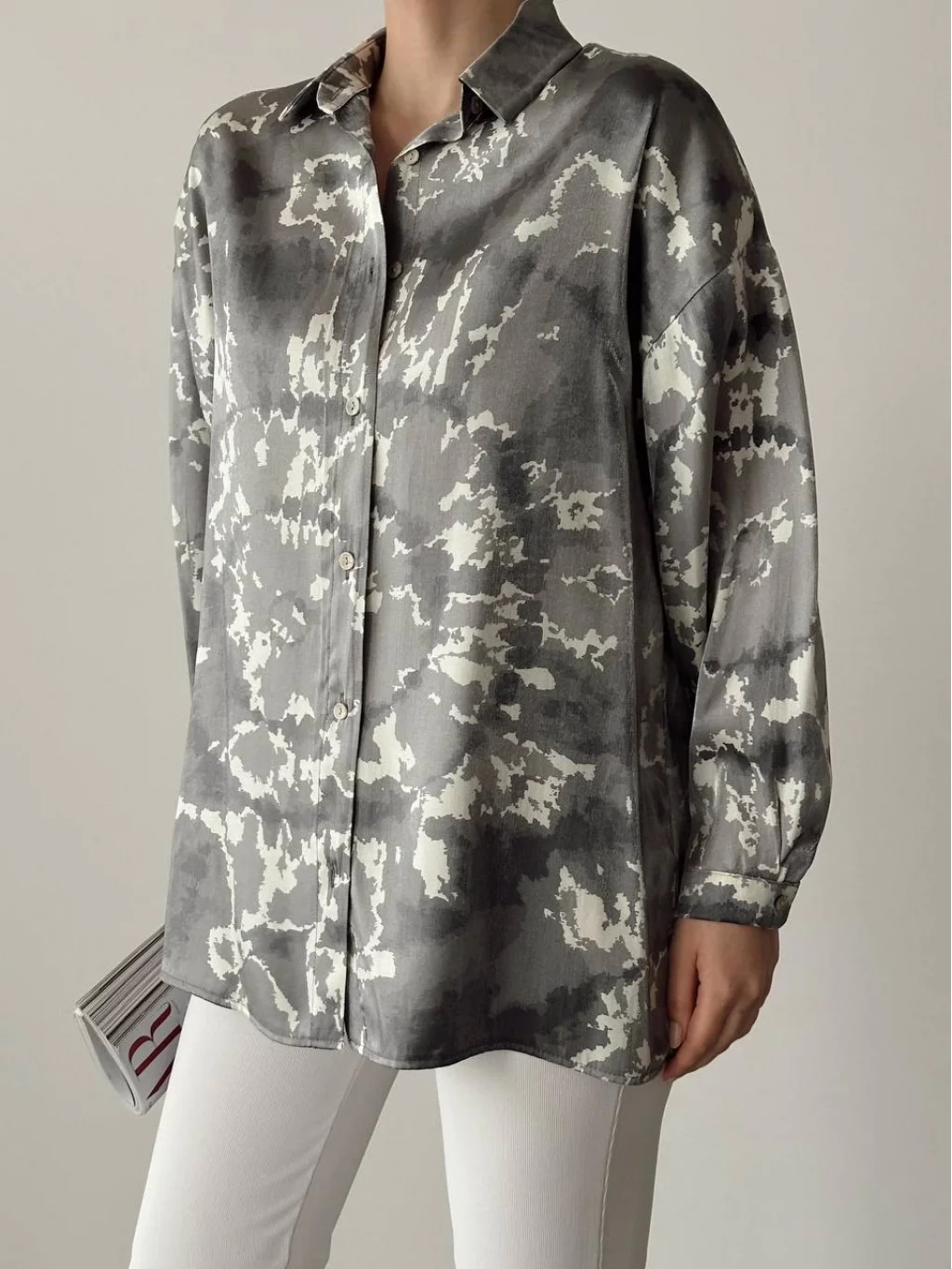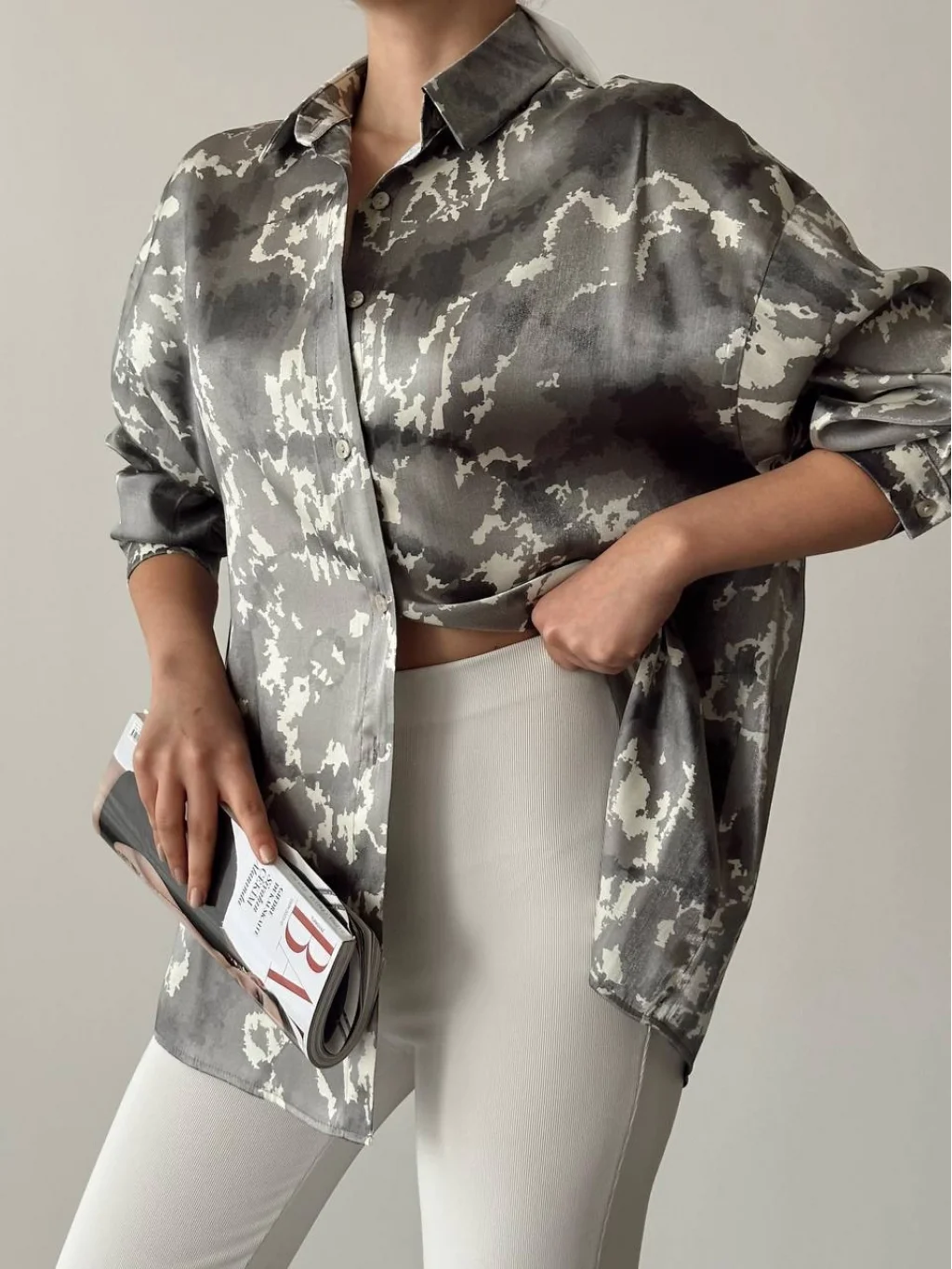 PARILTI KAMUFLAJ DESEN GÖMLEK GRİ