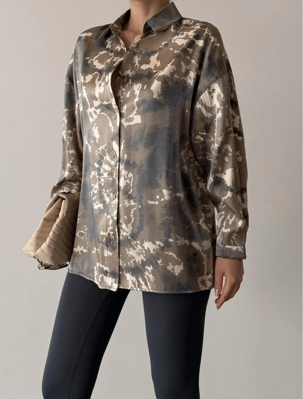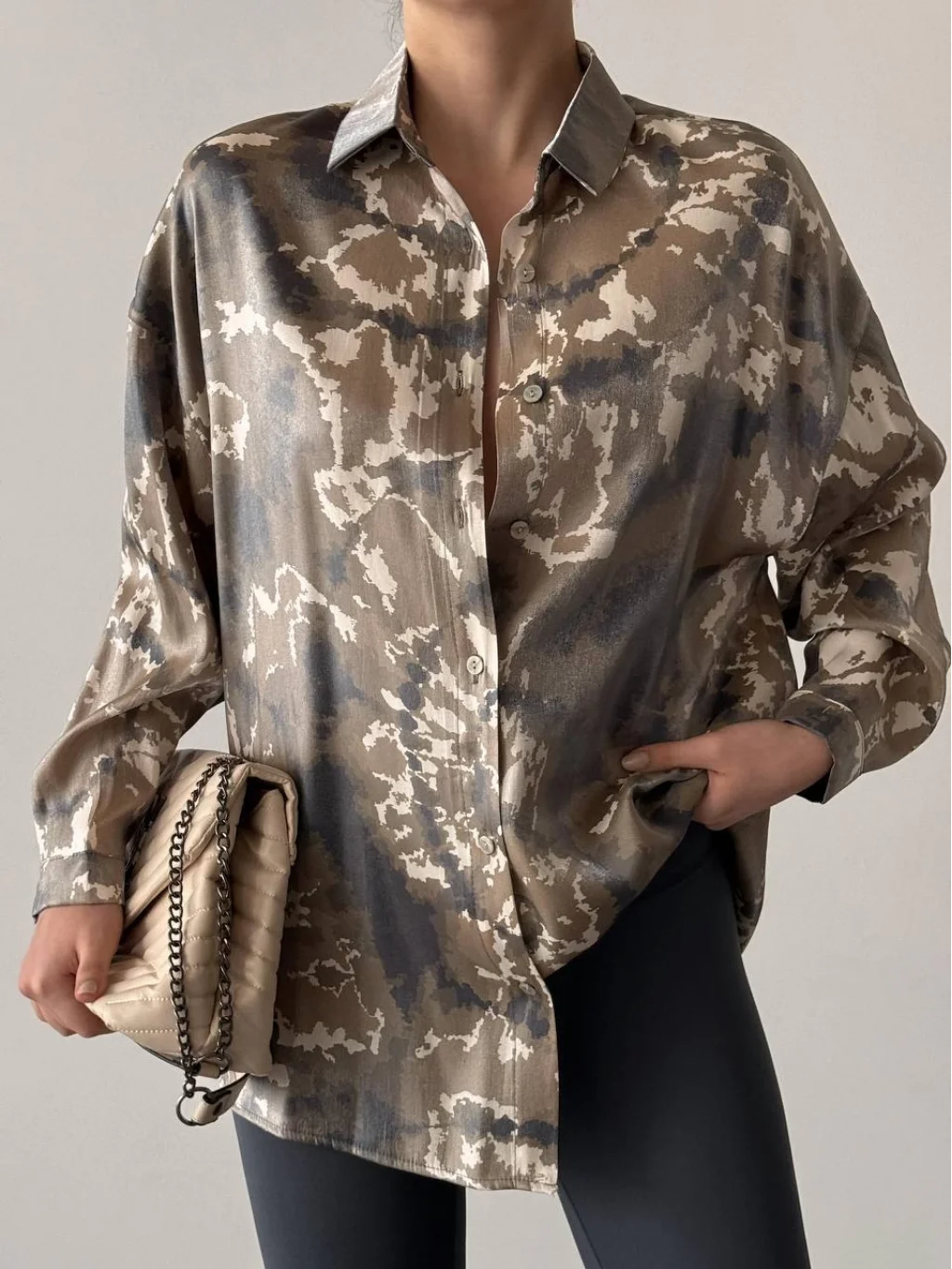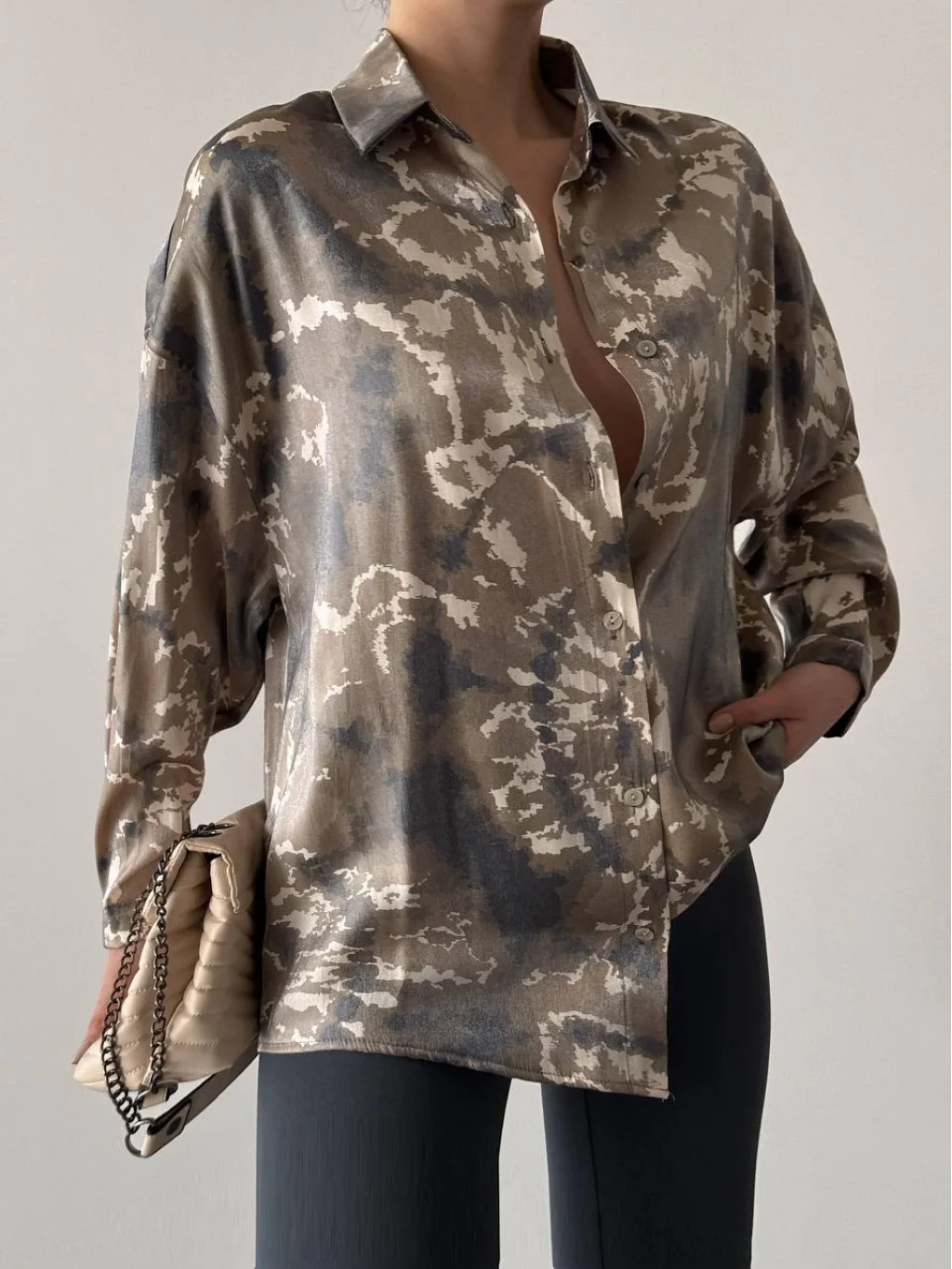 PARILTI KAMUFLAJ DESEN GÖMLEK HAKİ