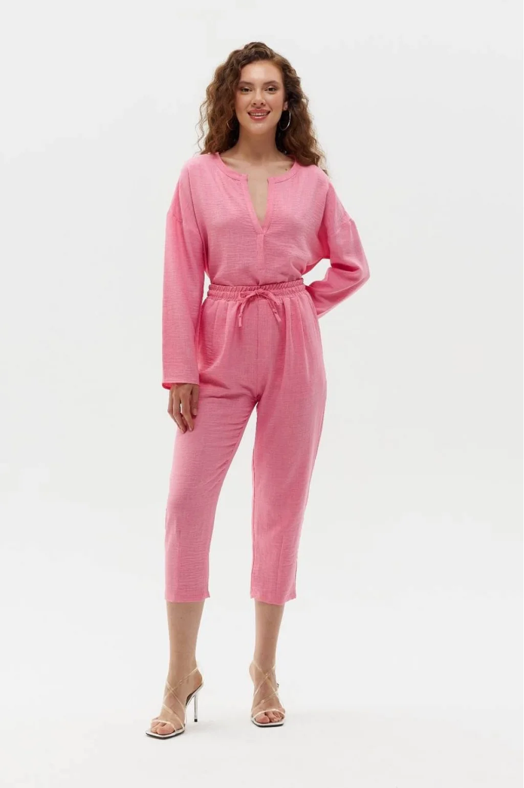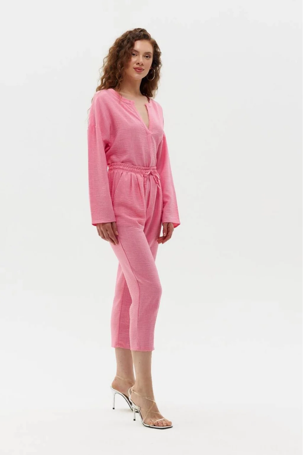 PEMBE V YAKA BLUZ PANTOLON TAKIM