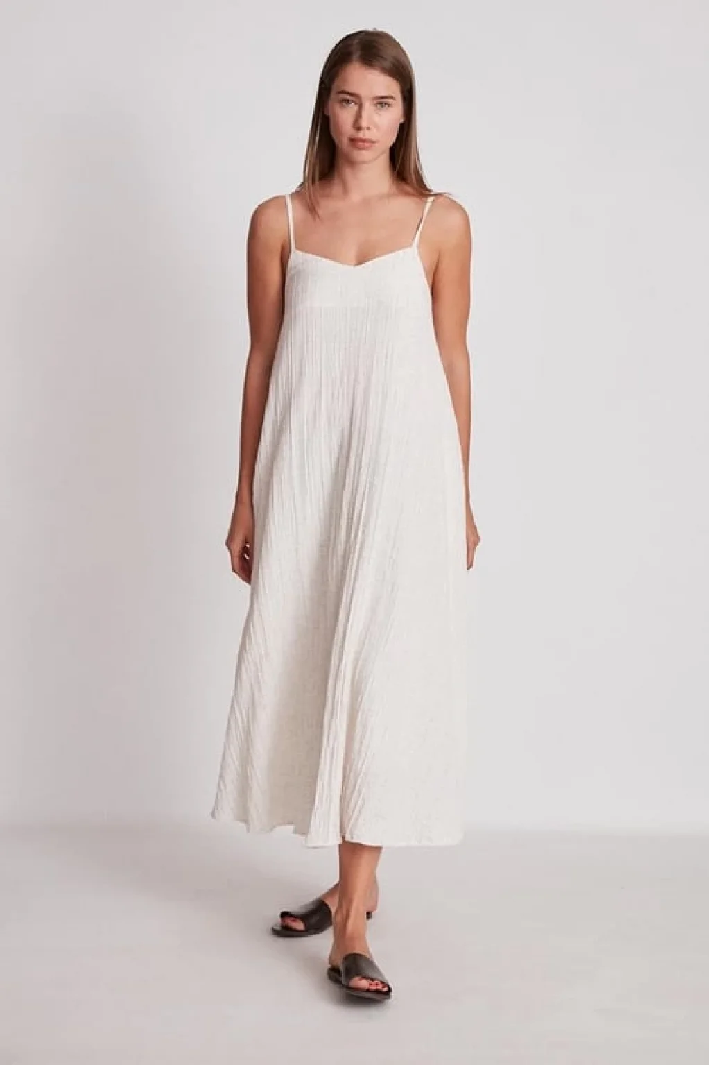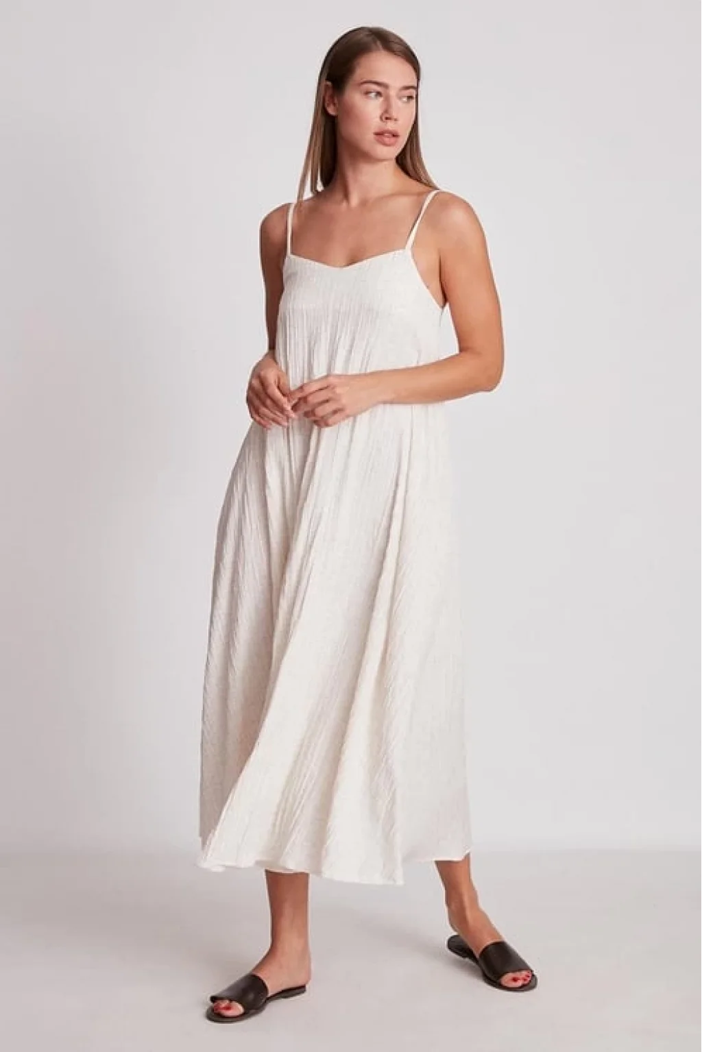 ASTARLI İNCE ASKILI KETEN ELBİSE