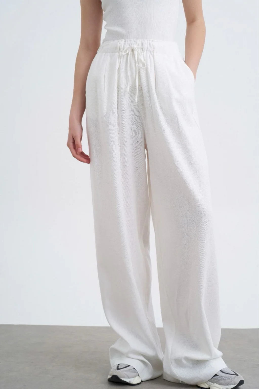PERRY BELİ LASTİKLİ BEYAZ KETEN PANTOLON