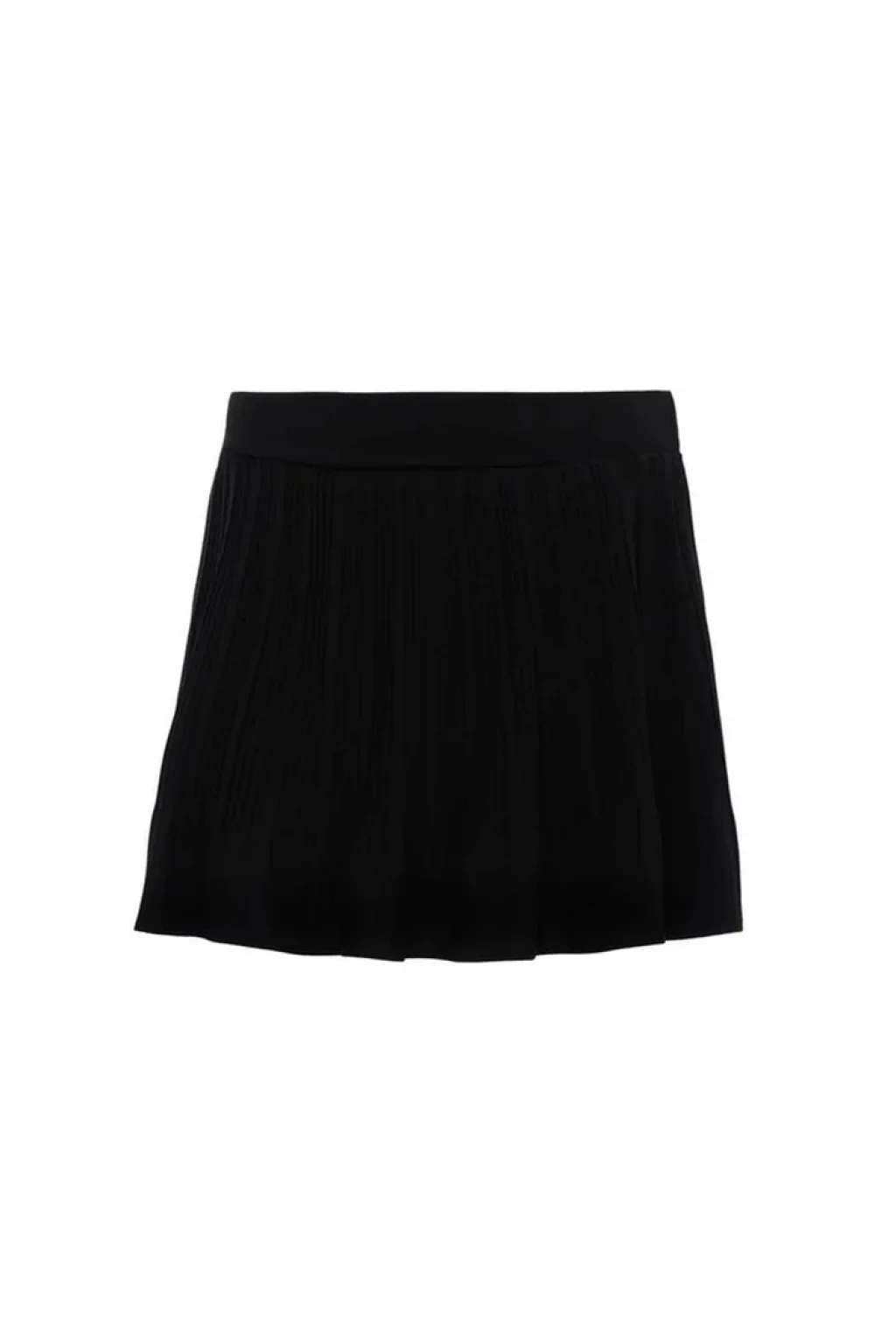 Pile Detaylı Beli Lastikli Mini Şort Etek Siyah