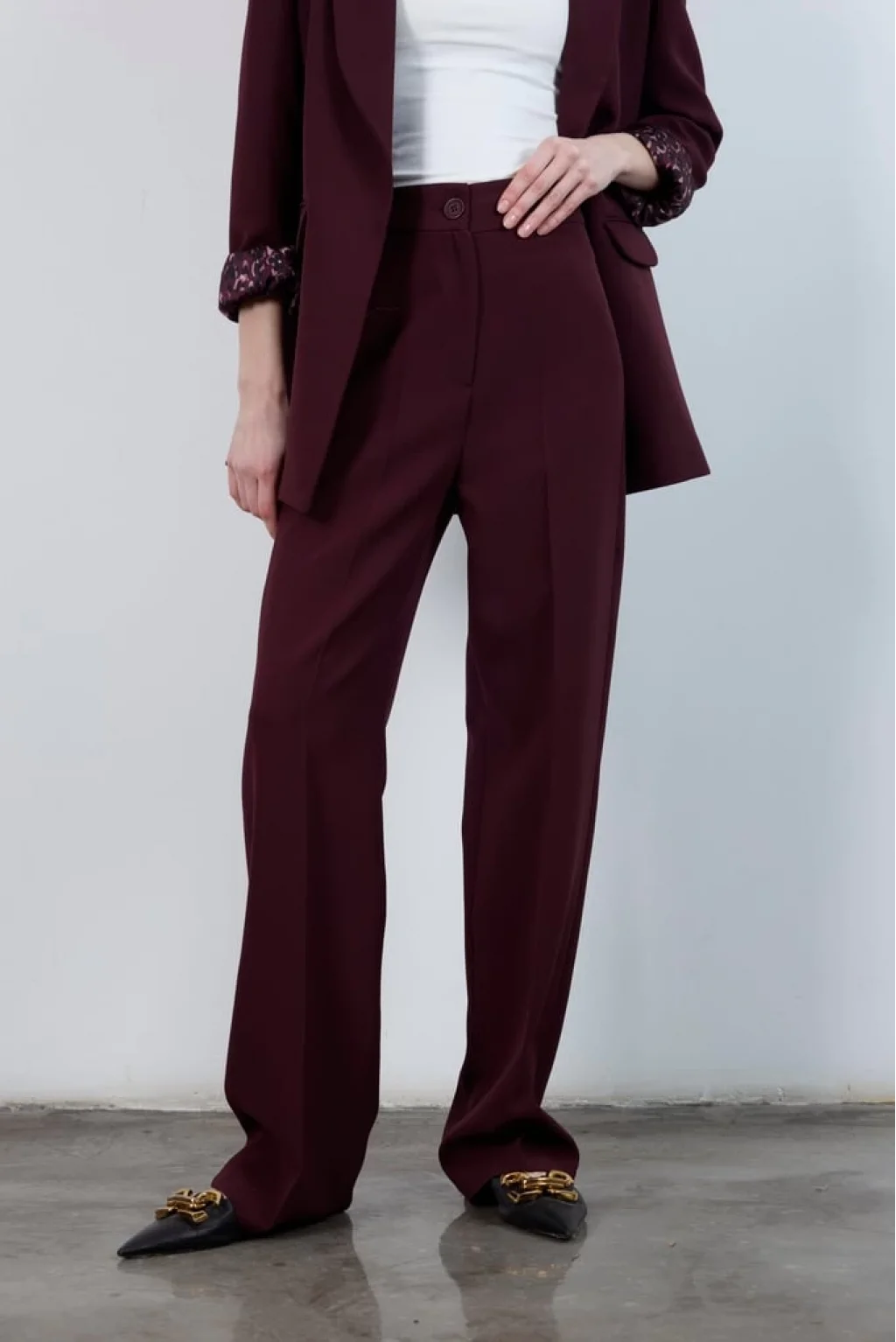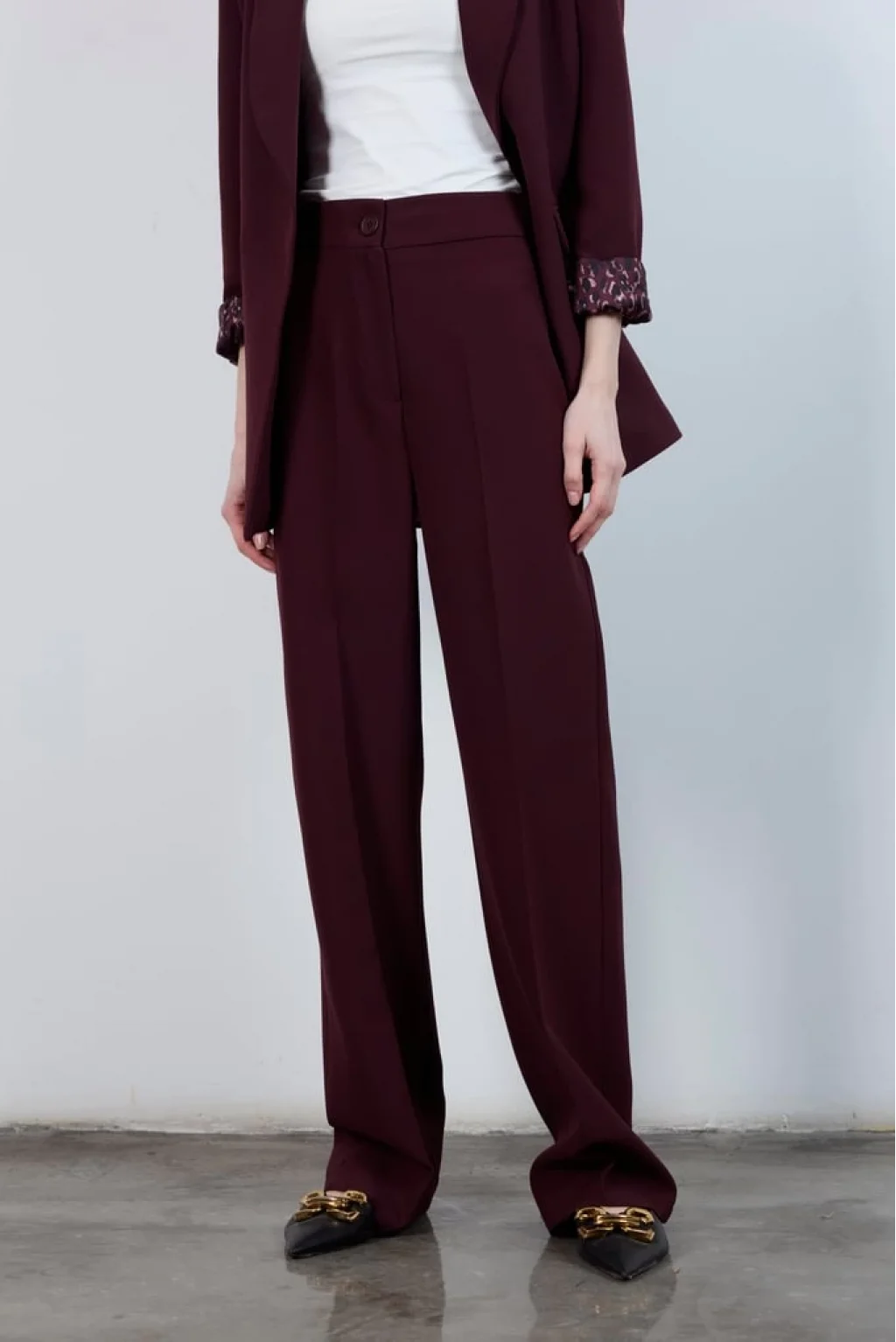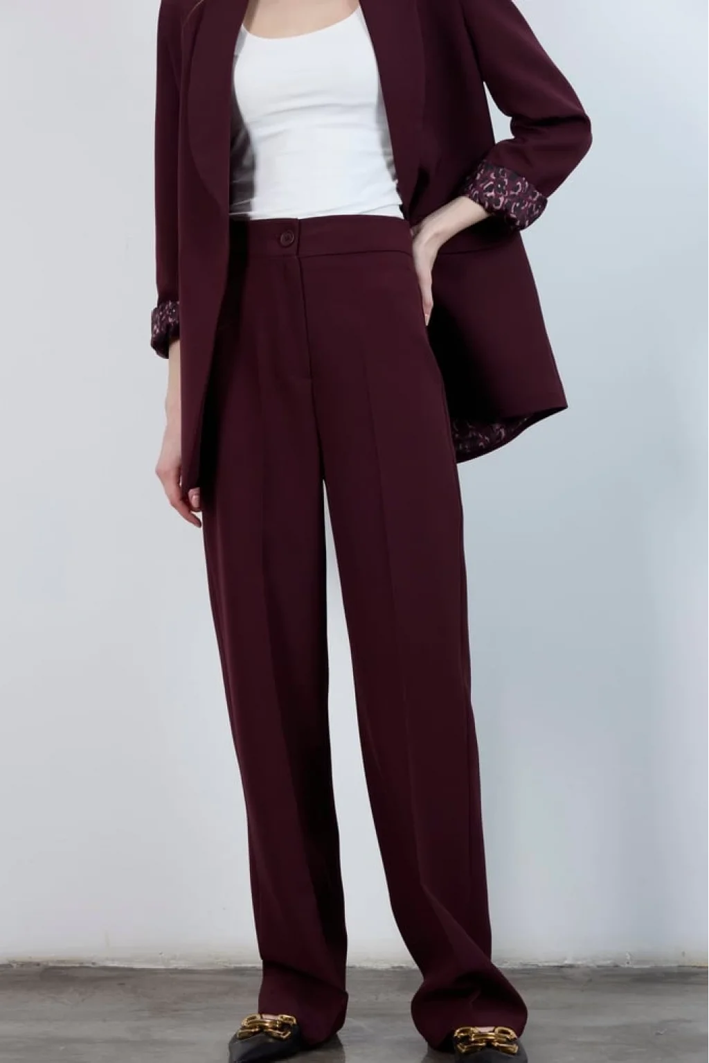 Pilesiz Palazzo Paça Mürdüm Kumaş Pantolon