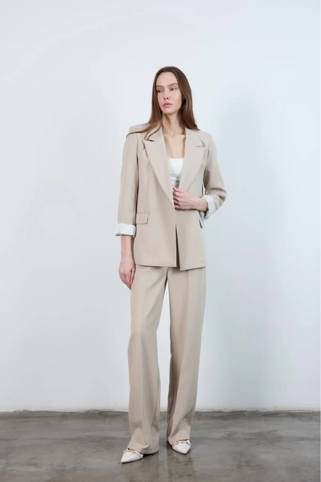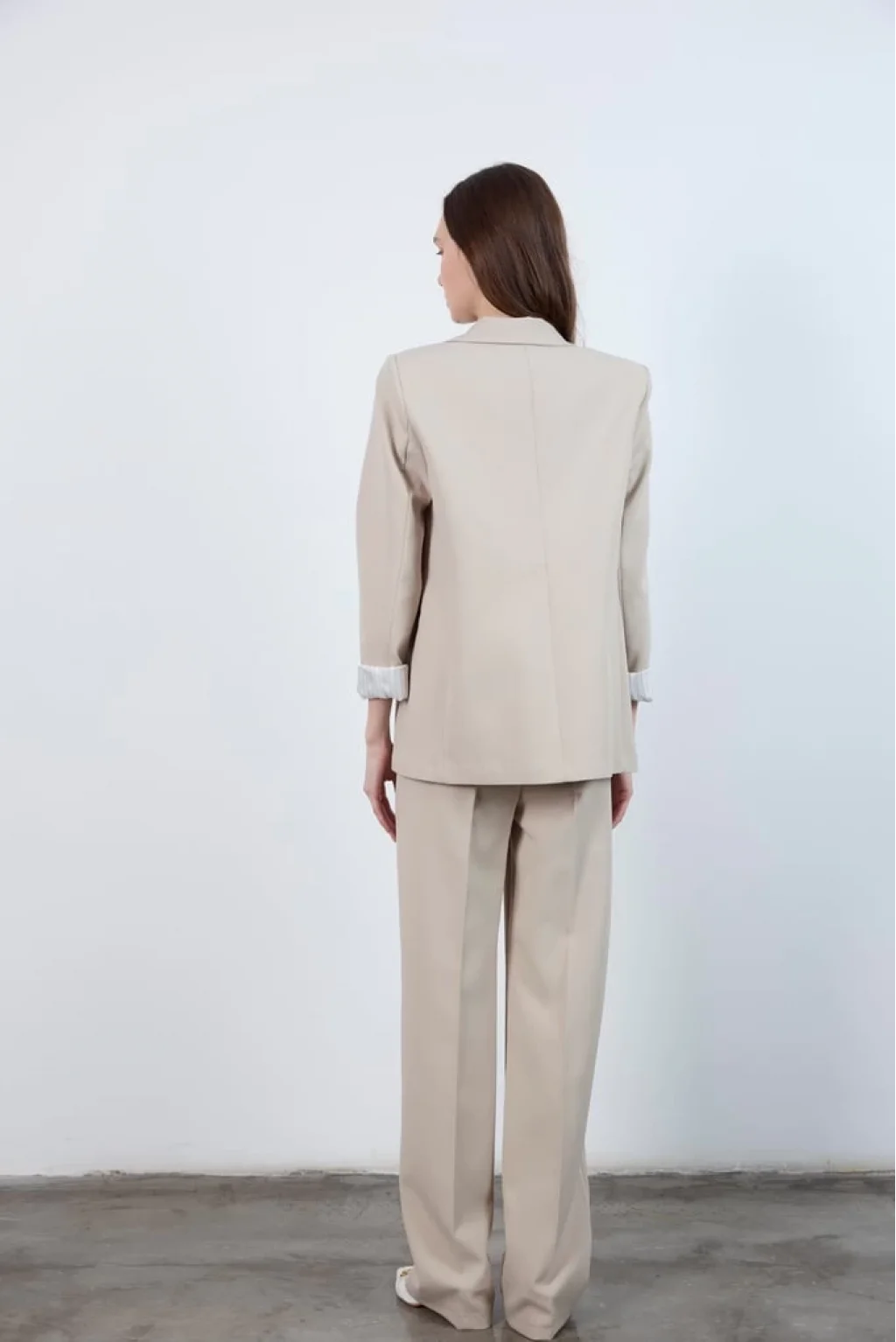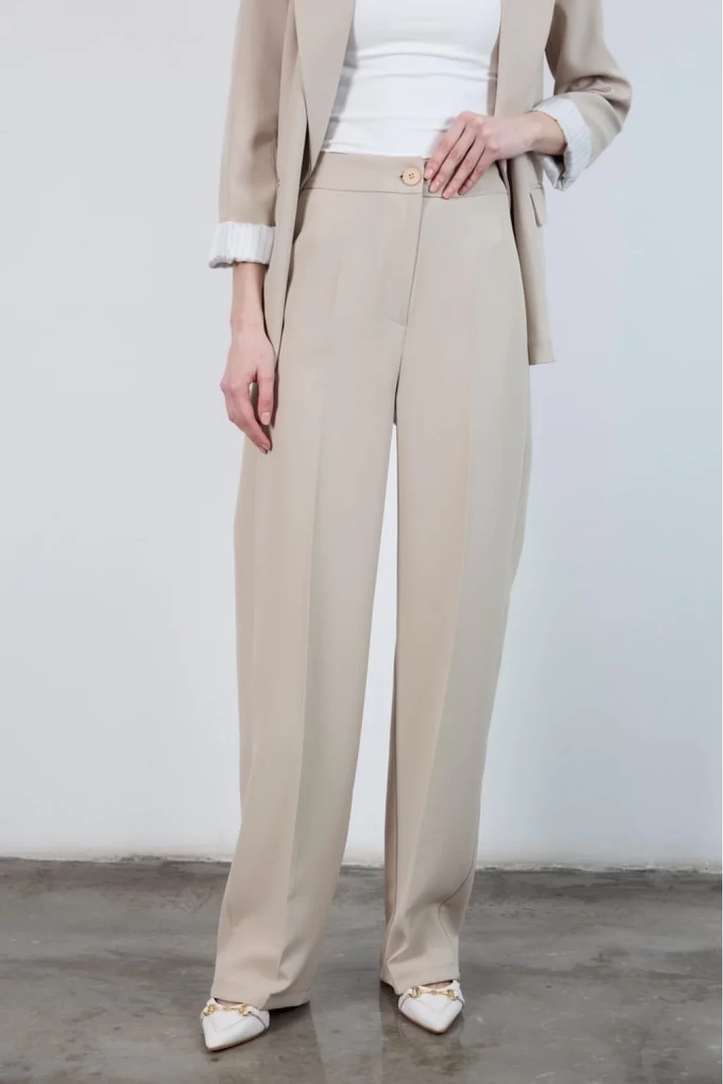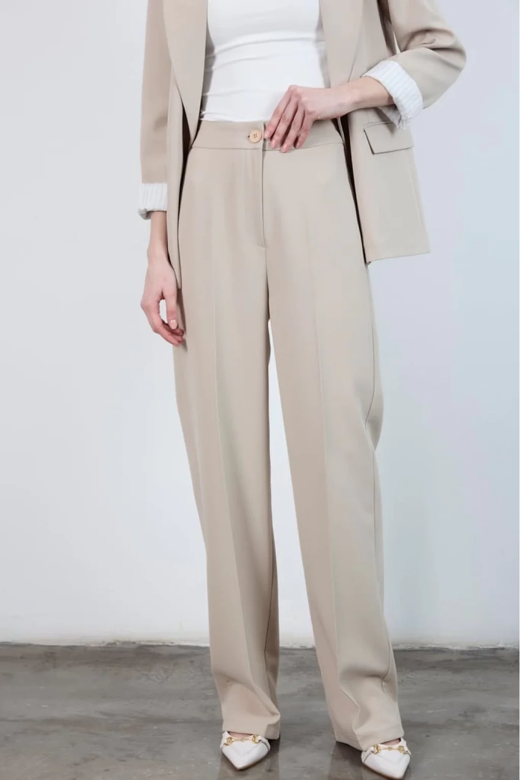 Pilesiz Palazzo Paça Taş Renk Kumaş Pantolon