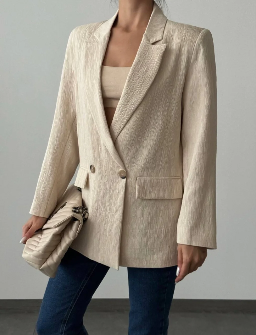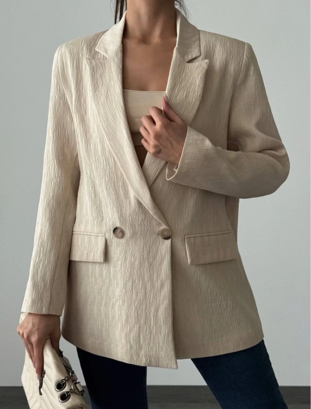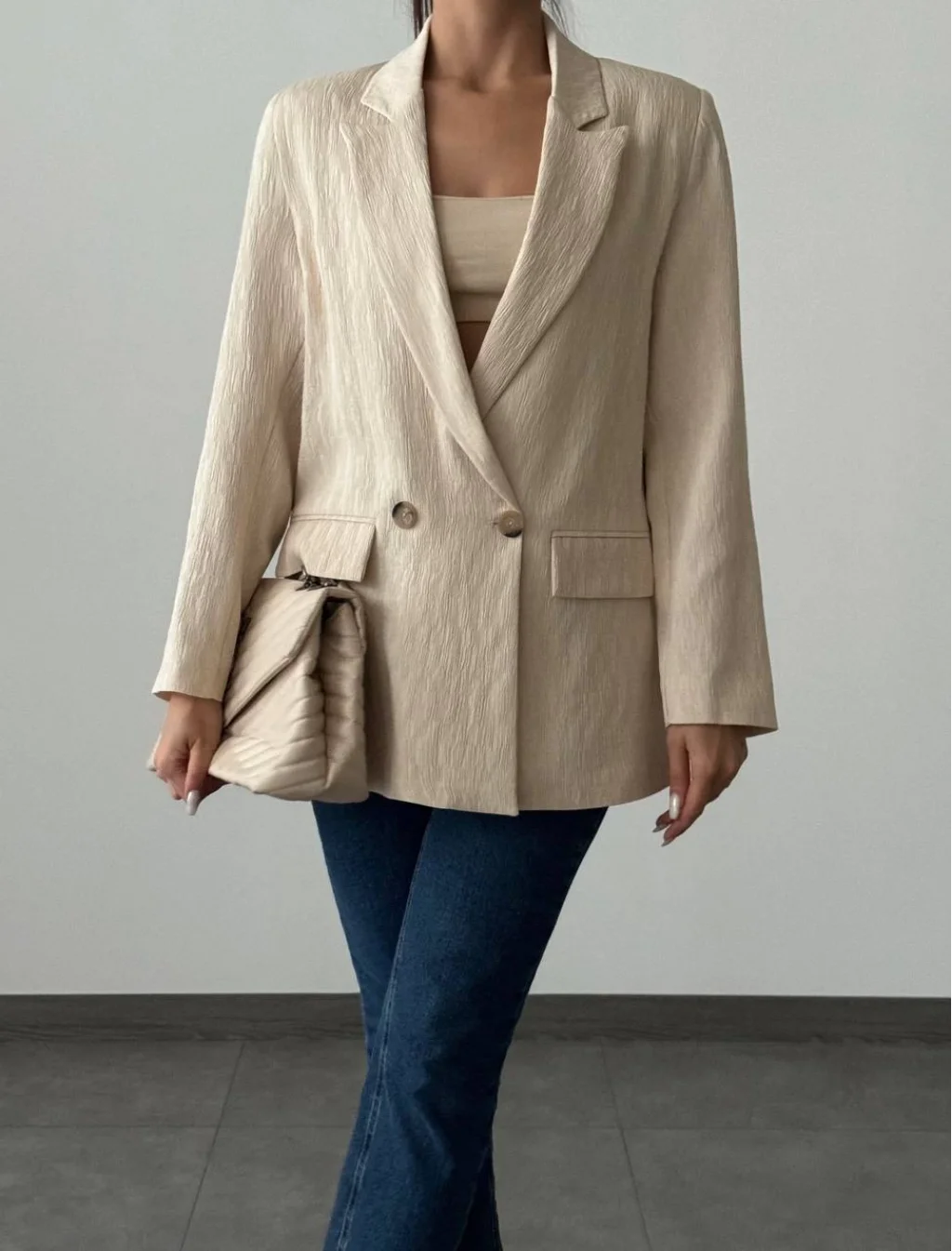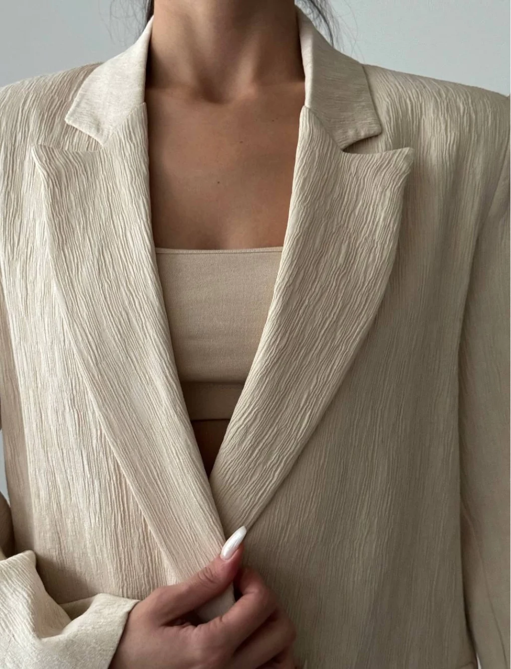 PLİSELİ ÇİFT DÜĞME BLAZER CEKET TAŞ