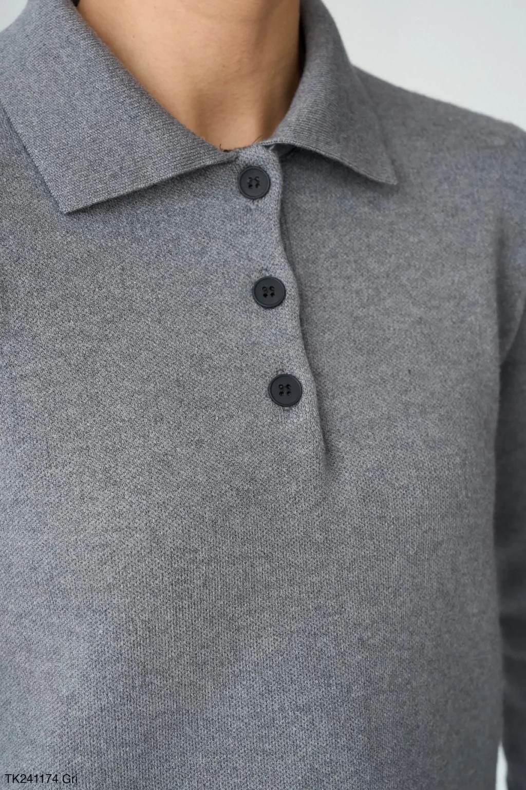 • MYRA Polo Yaka Triko Kazak-Gri, şıklığı ve rahatlığı bir arada sunan üst giyim seçeneği.