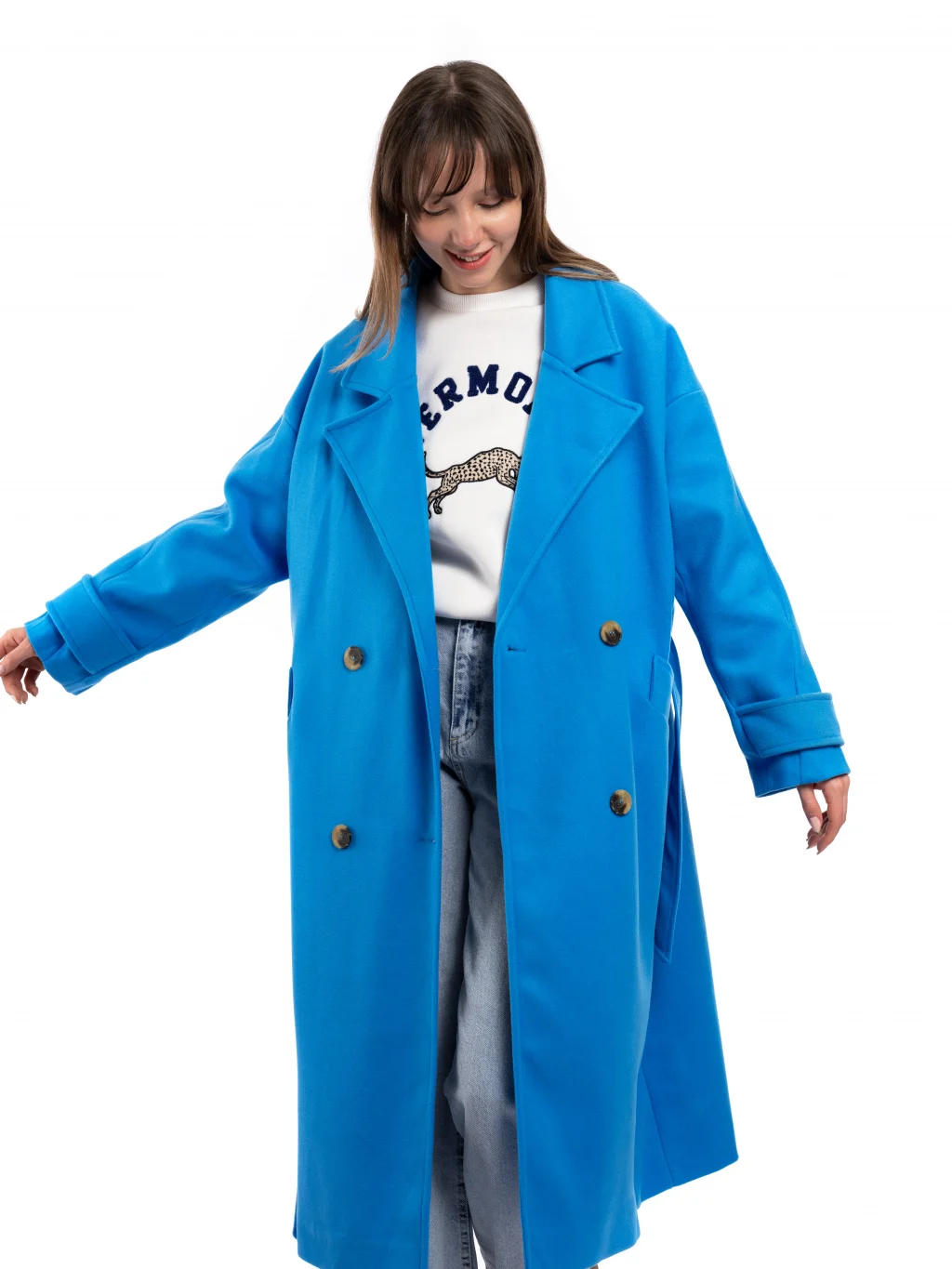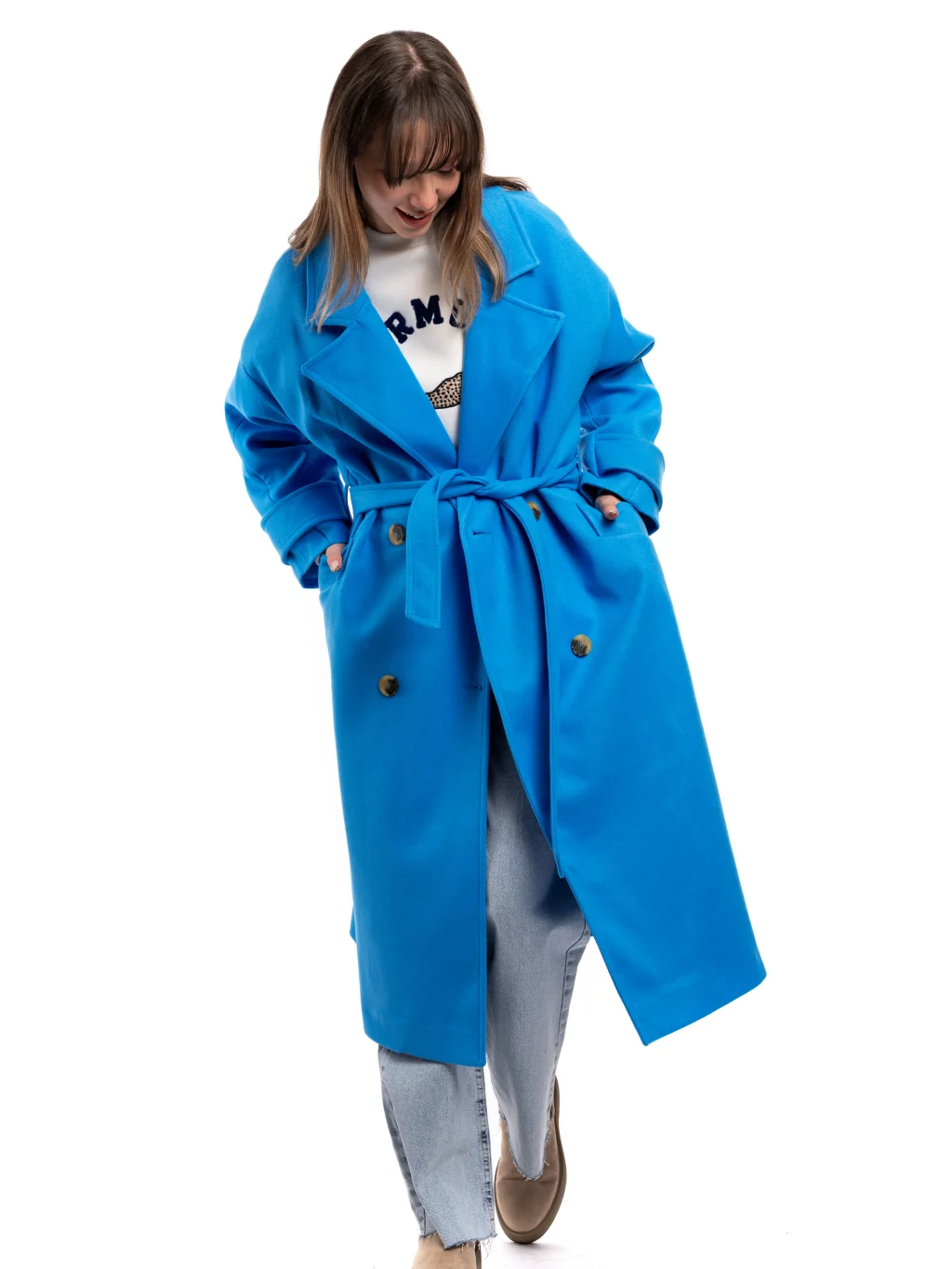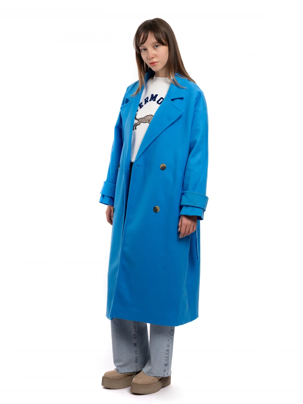 Kalıp olarak oversıze kalıptır.Düğmeli aynı zamanda bağlamalı modeldir.Mankende S beden kullanılmıştır.Yumuşak dokusuyla sizi sıcacık tutucak bu kaban