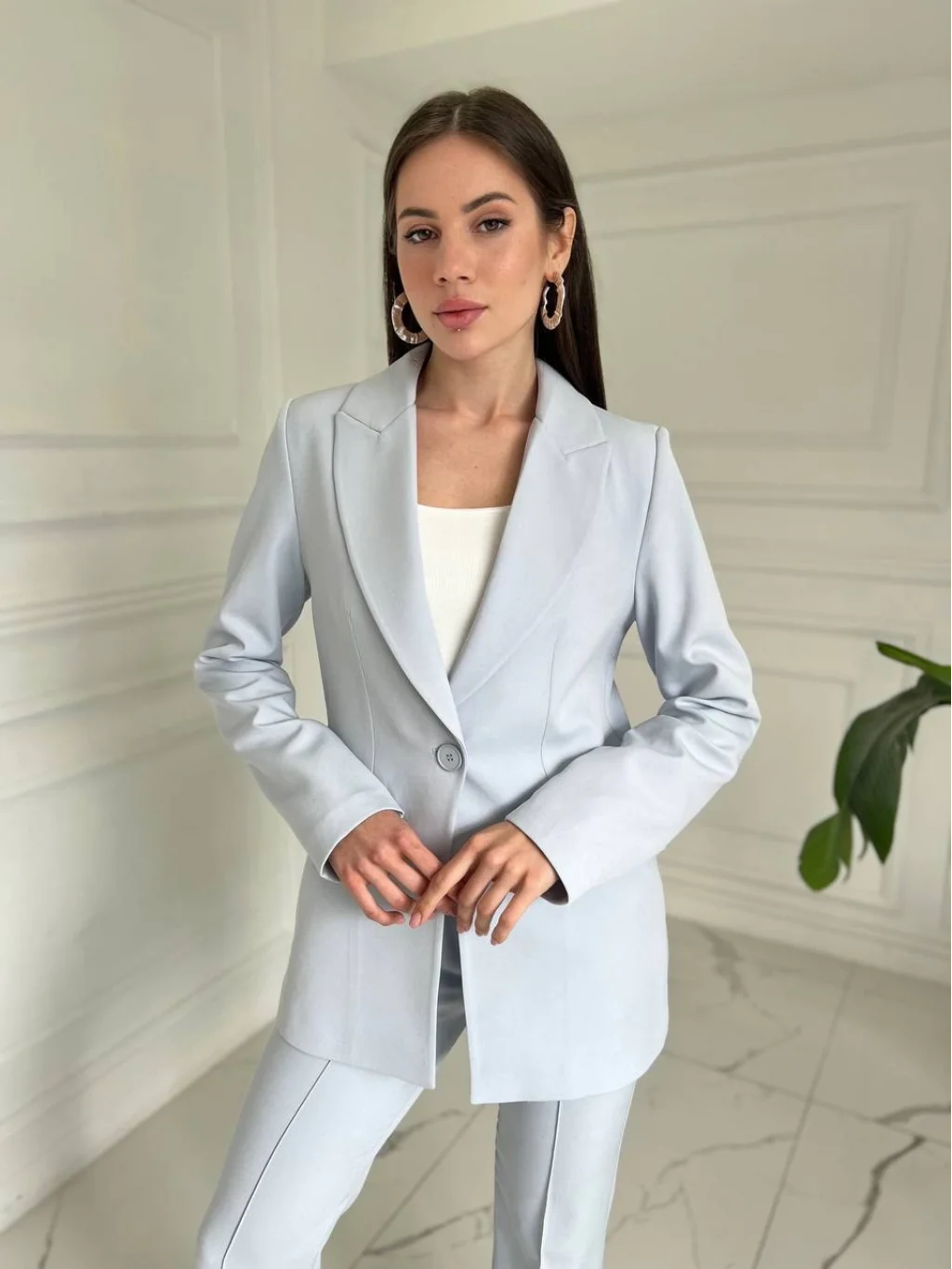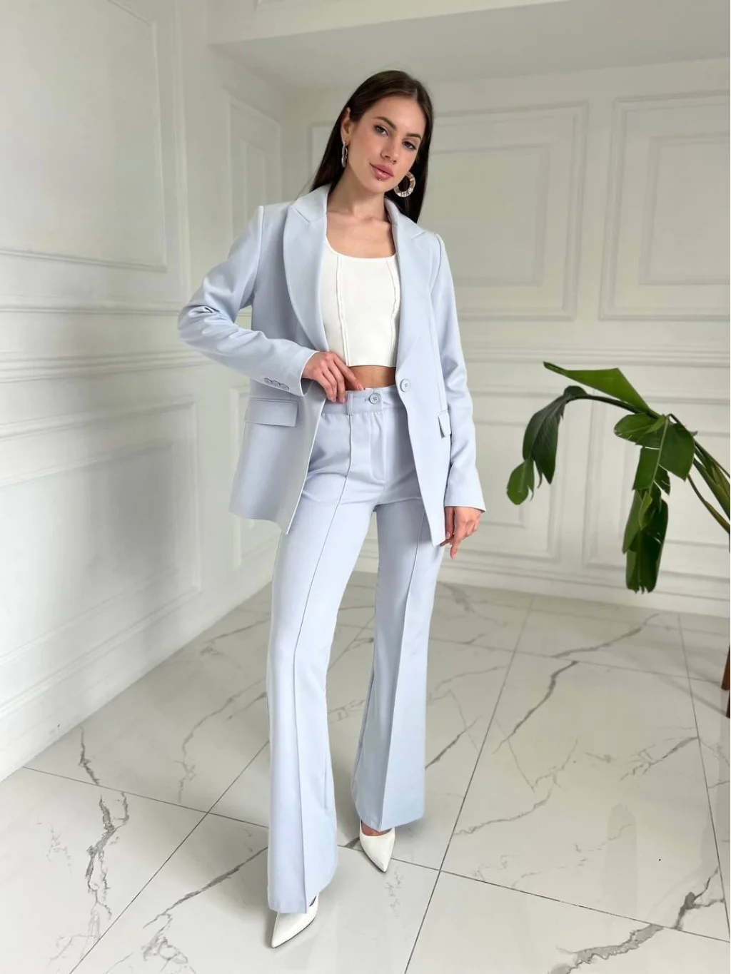 • Bebe MaviPremium Kumaş İspanyol Paça Pantolon Blazer Takım