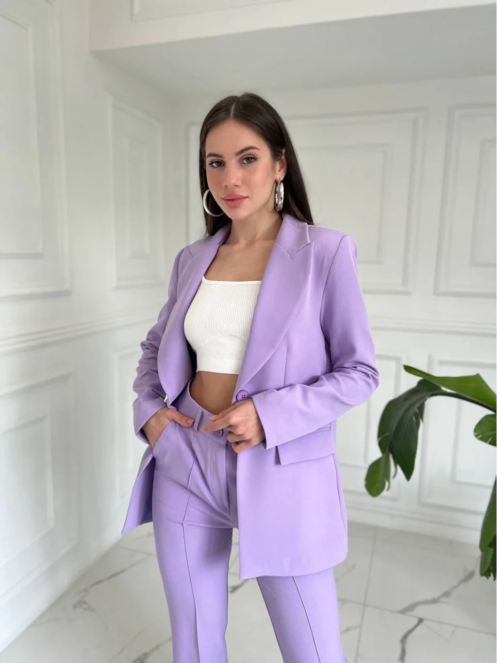 • Lila Premium Kumaş İspanyol Paça Pantolon Blazer Takım