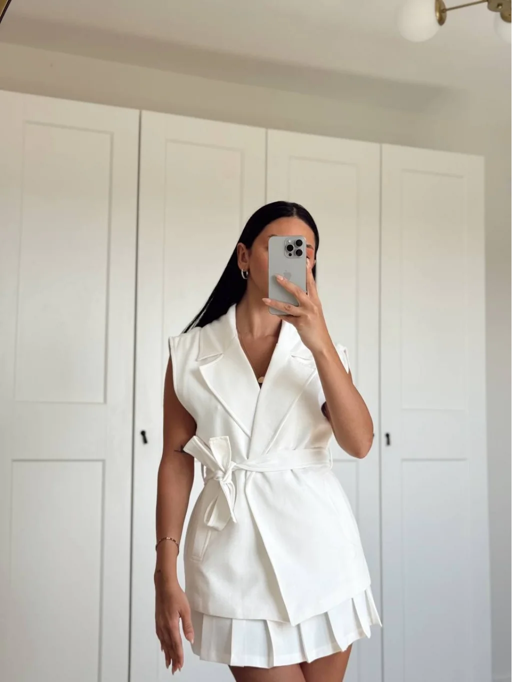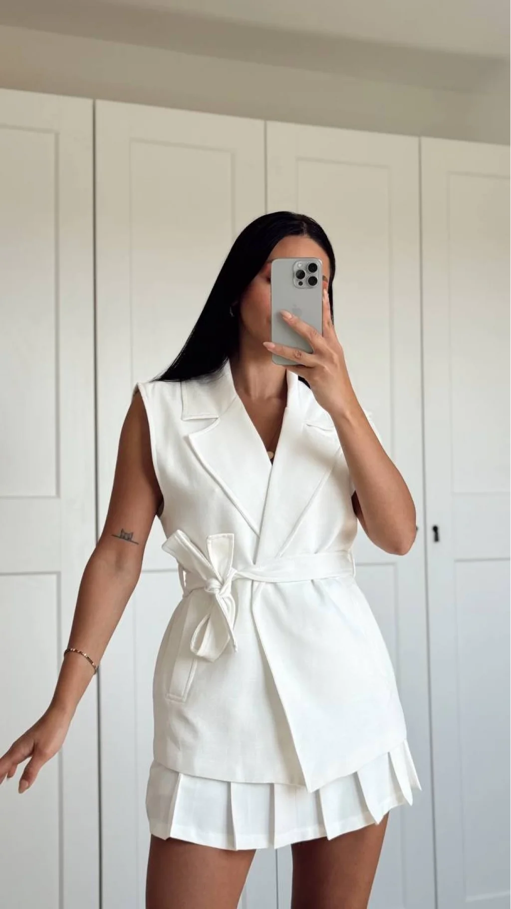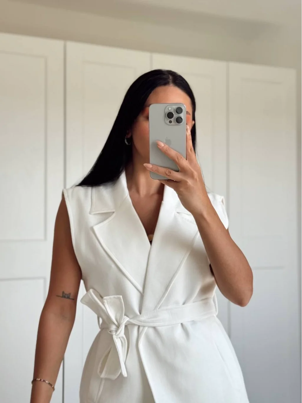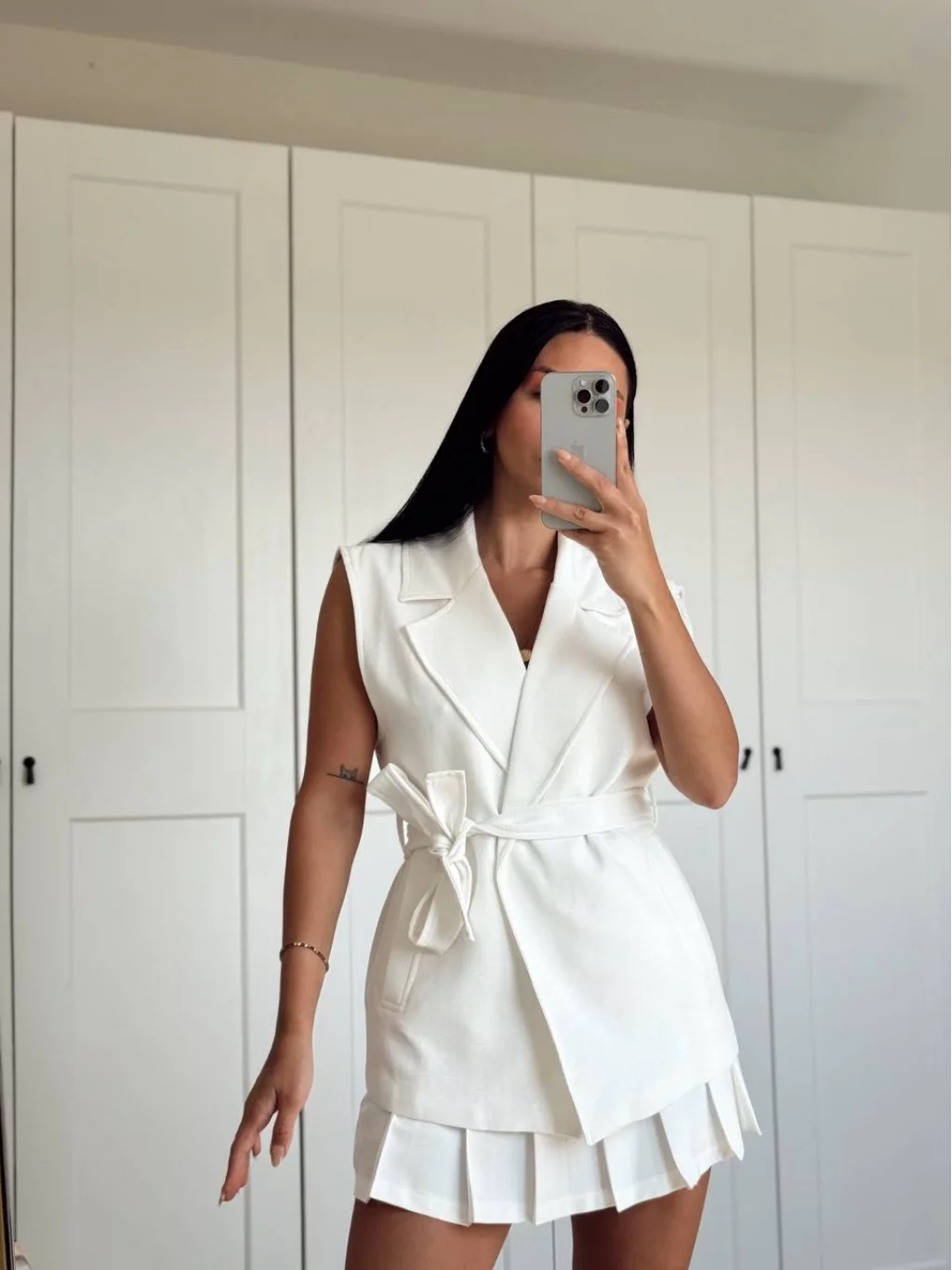 PREMİUM KUŞAKLI EKRU KETEN YELEK