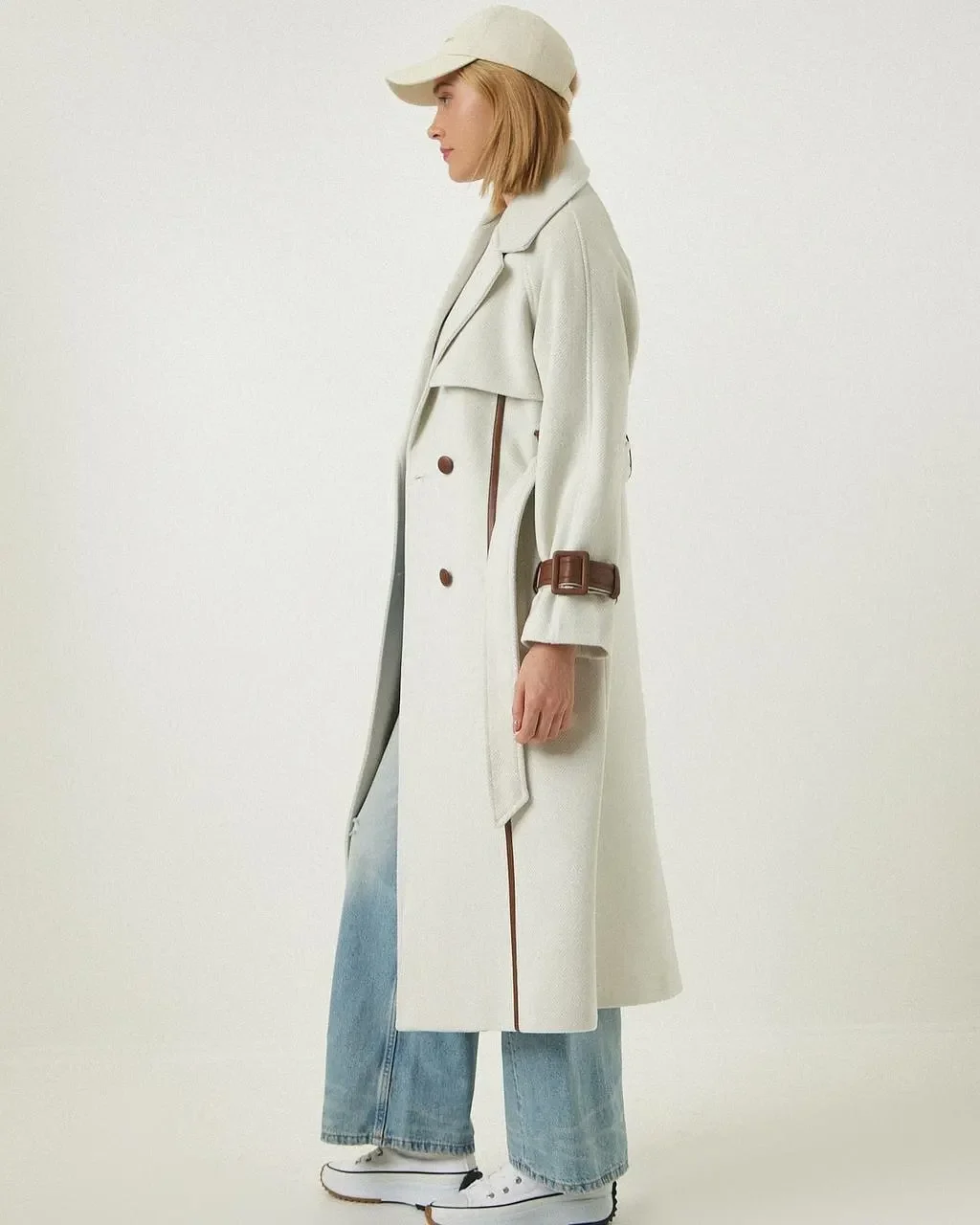Premium Model Deri Kol Detayli Yun ve Pamuk Karismi Baglamali Kaban