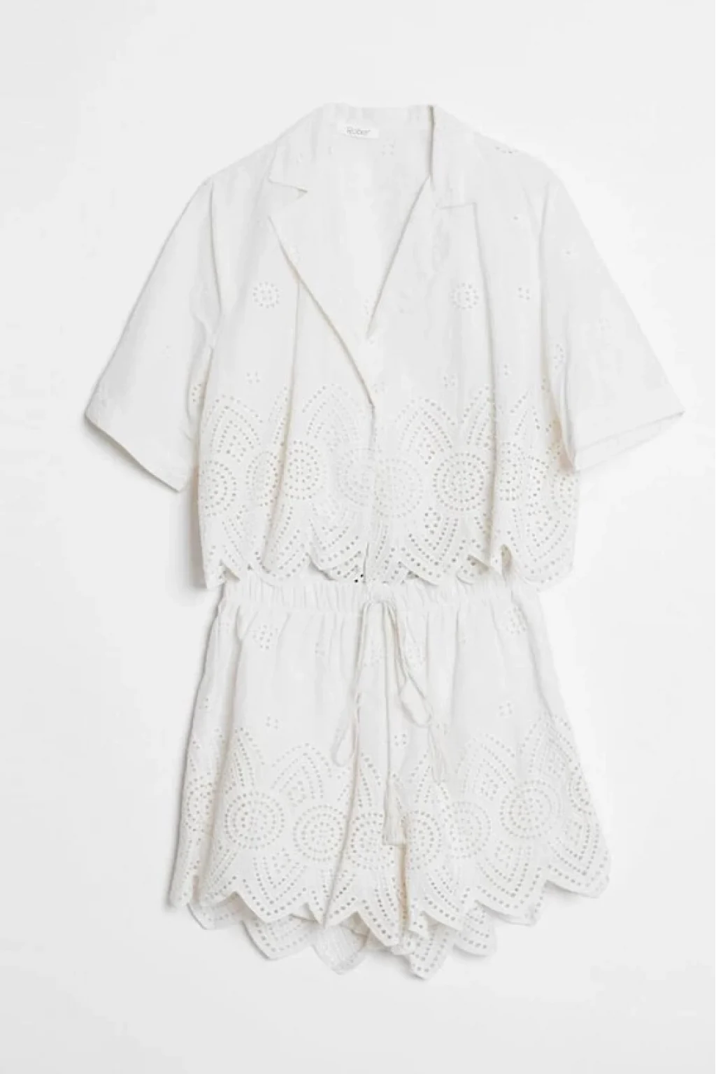 MYRA Premium Seri Gömlek Şort Takım-Beyaz, standart beden, premium kalite ve dantel detaylarıyla şıklığı ön plana çıkarıyor.